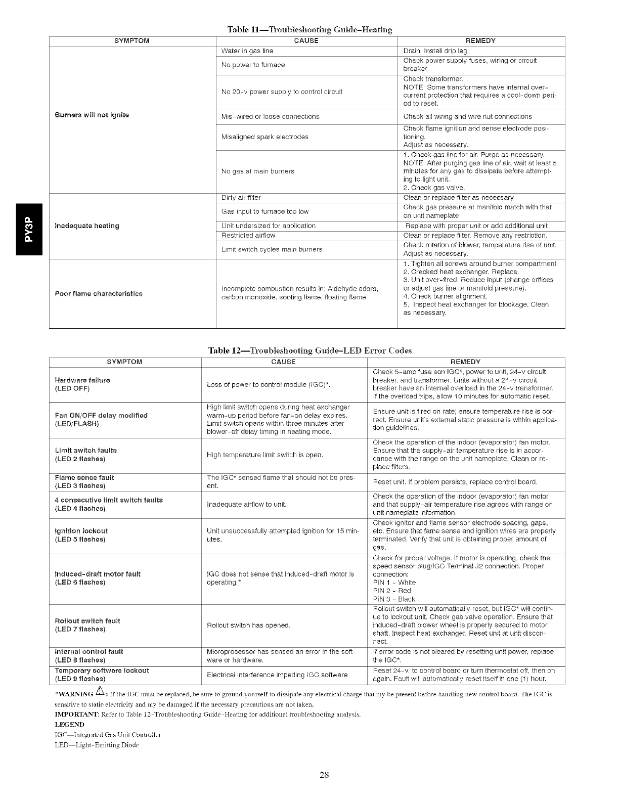 IMPORTANT: Refer to Table 12 Troubleshooting Guide Heating for additional troubleshooting analysis.