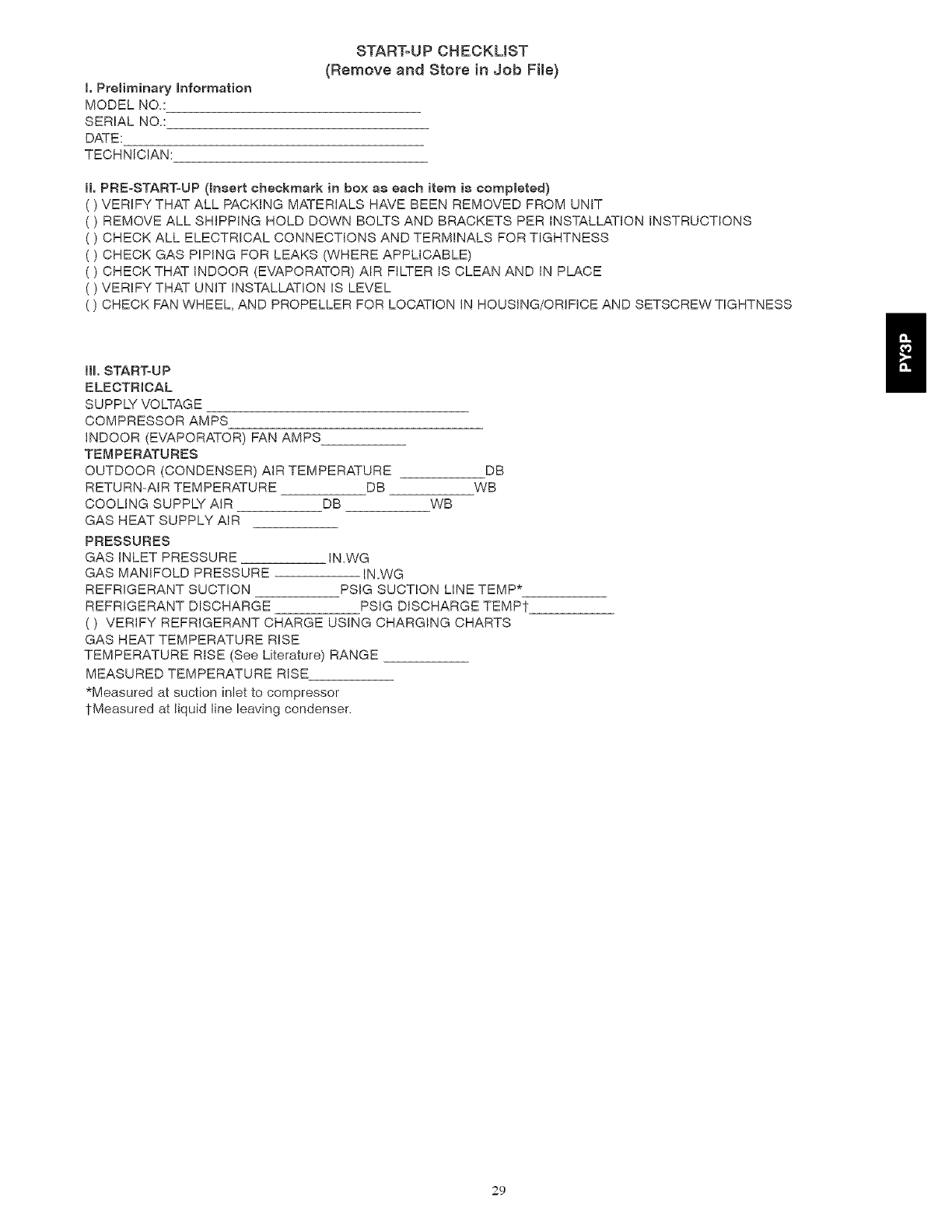 II, PRE=START-UP (mnsert ¢heckmark in box as each item ia completed)