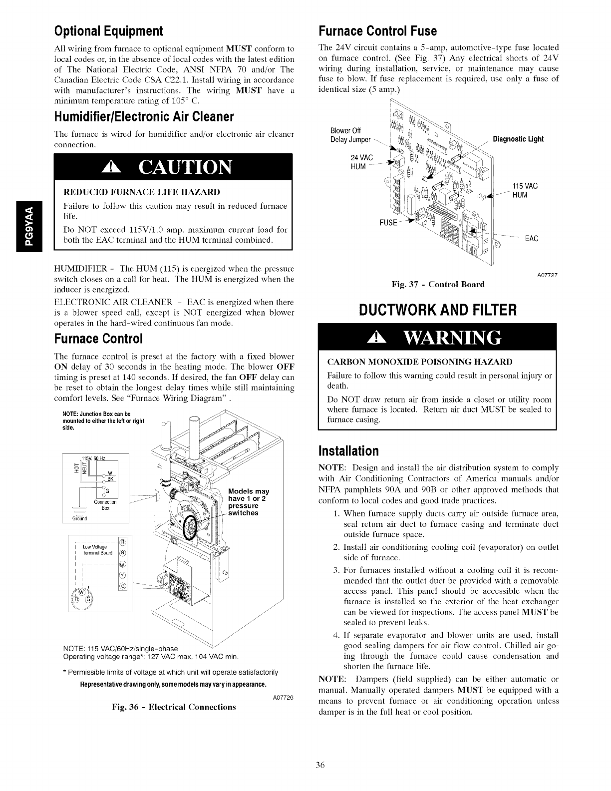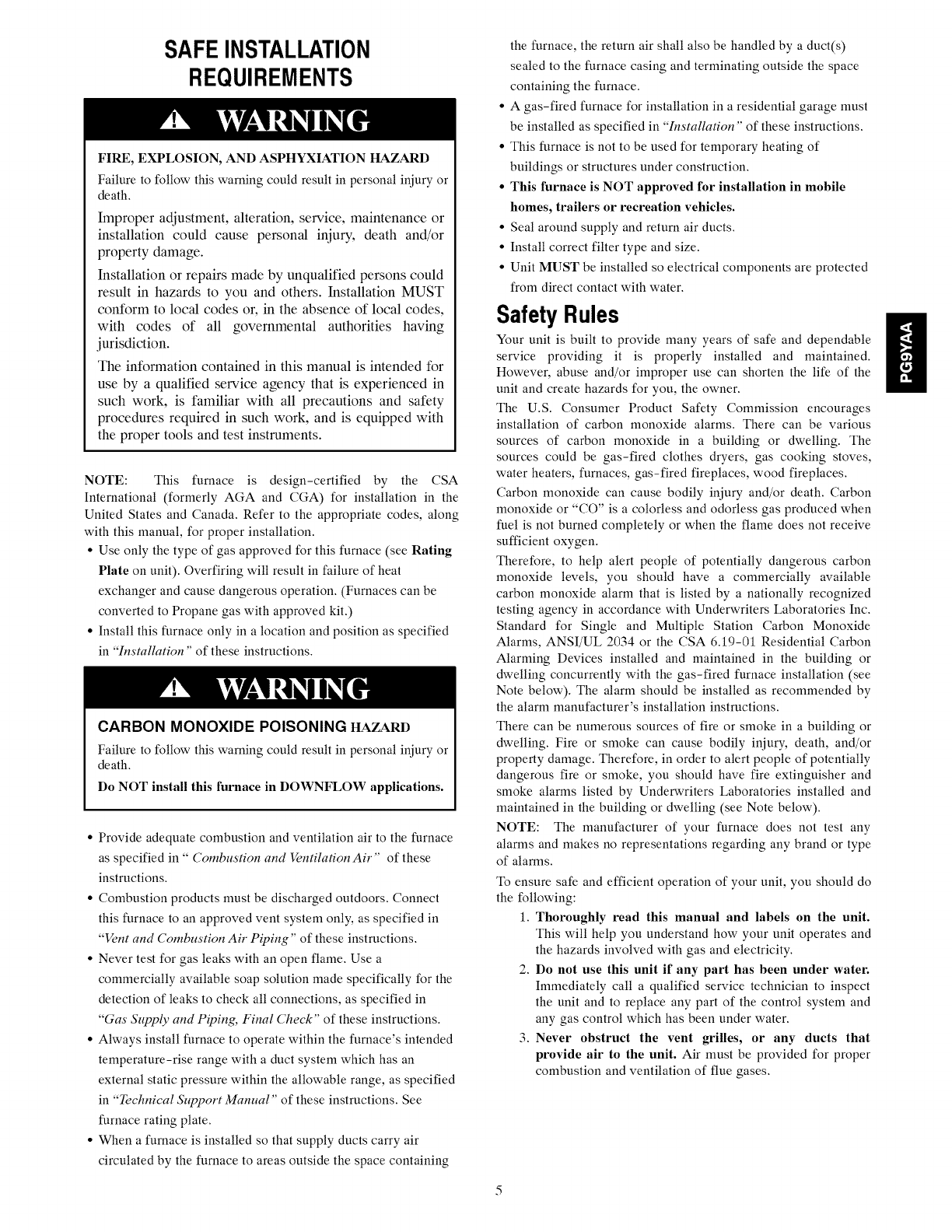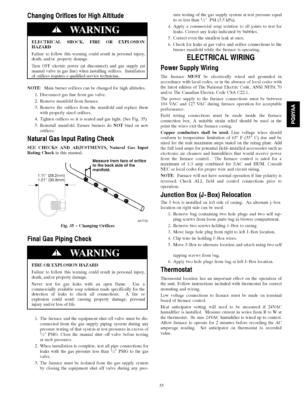 PAYNE Furnace/Heater, Gas Manual L0907498