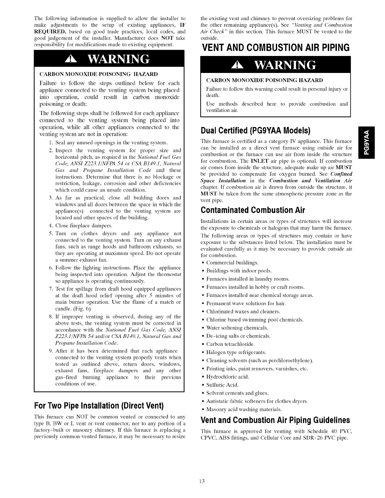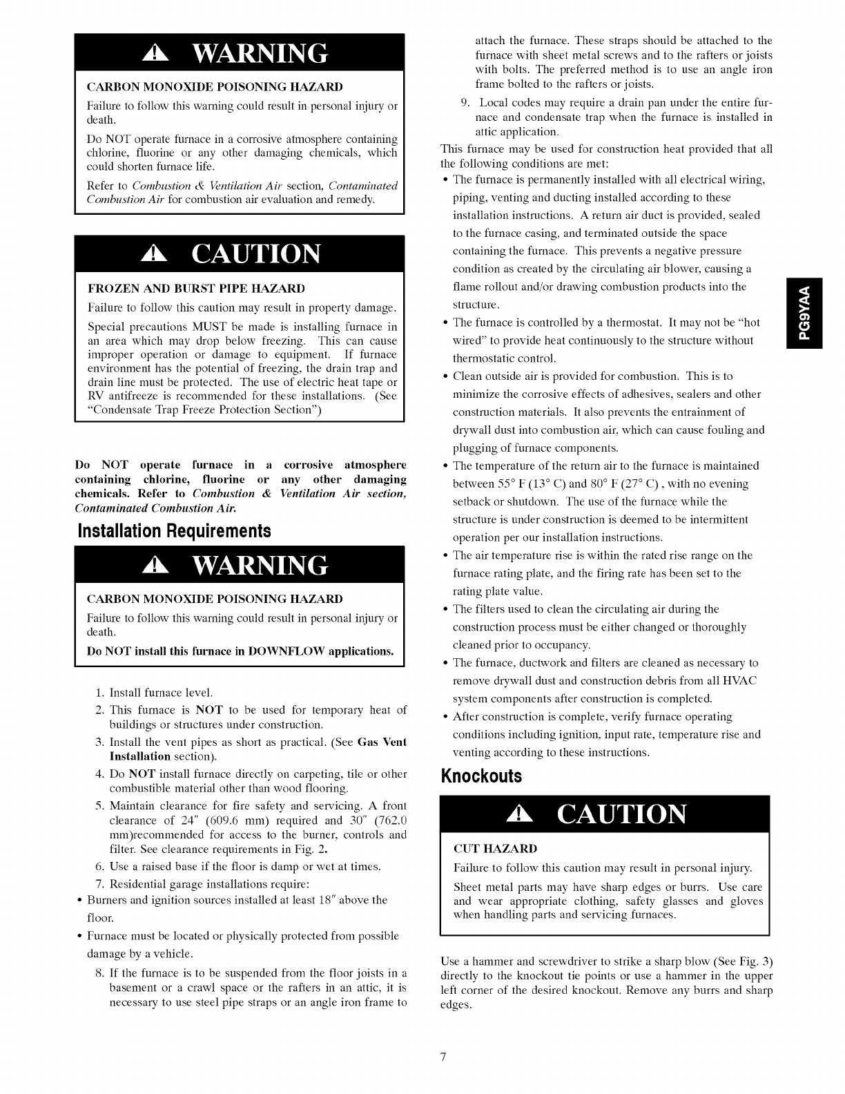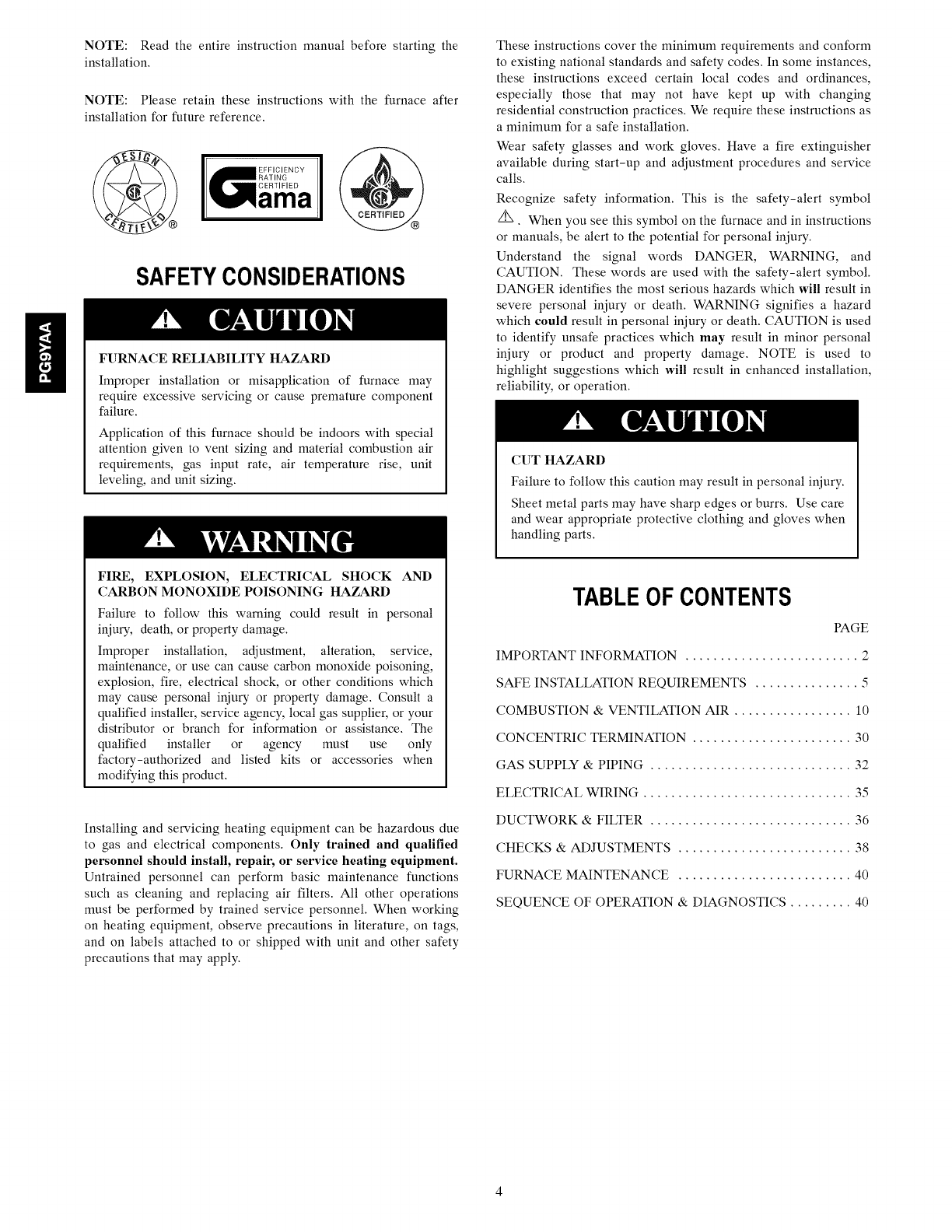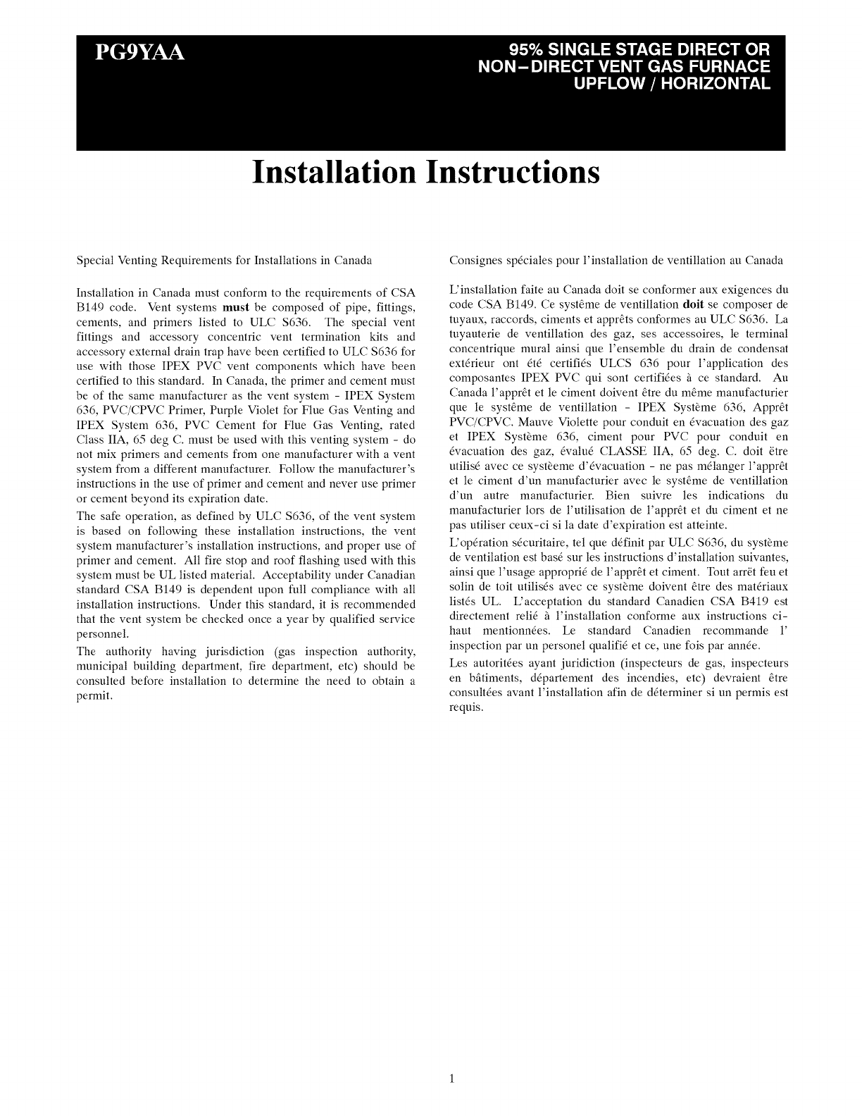 PAYNE Furnace/Heater, Gas Manual L0907498