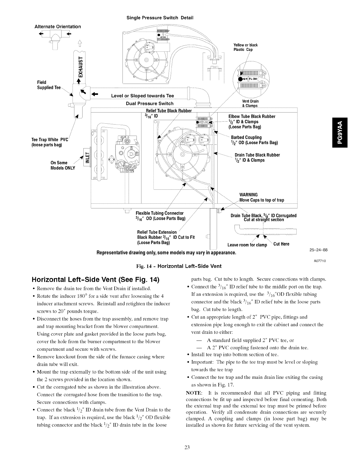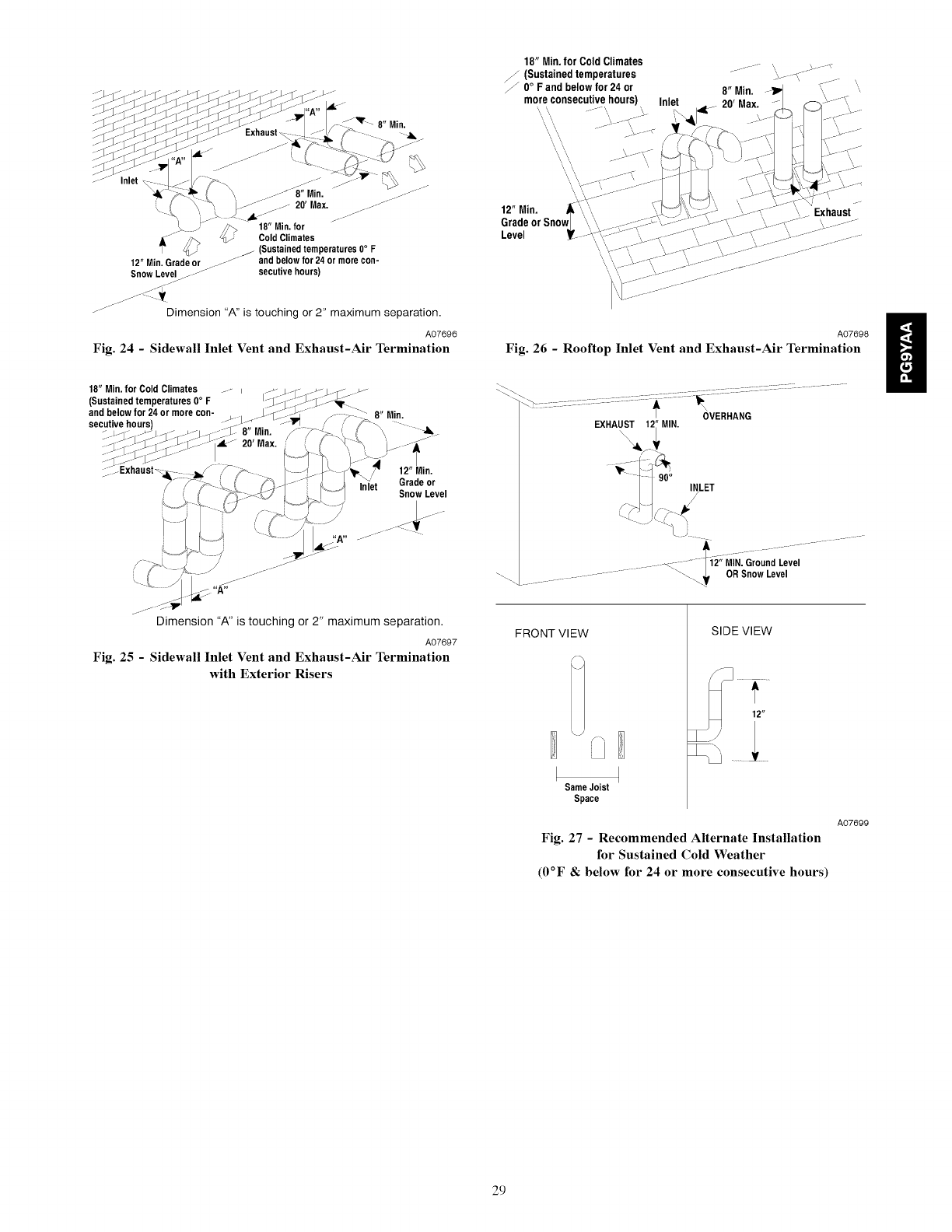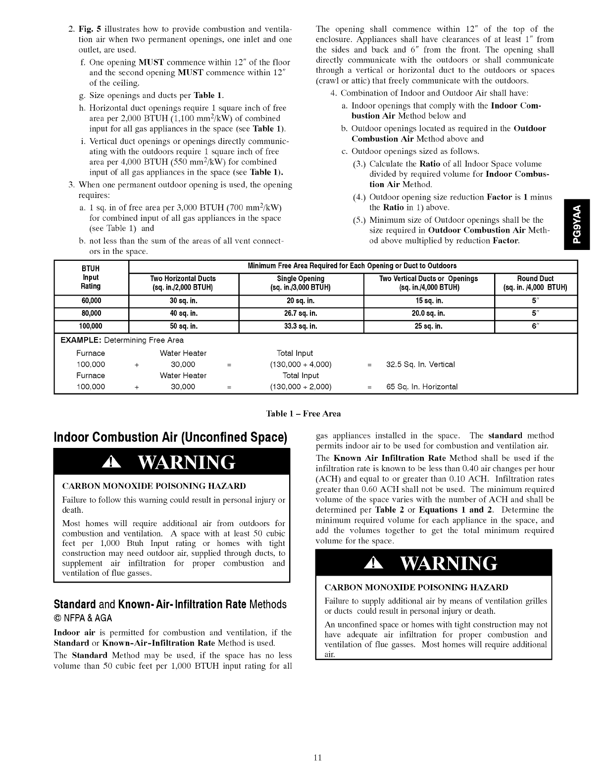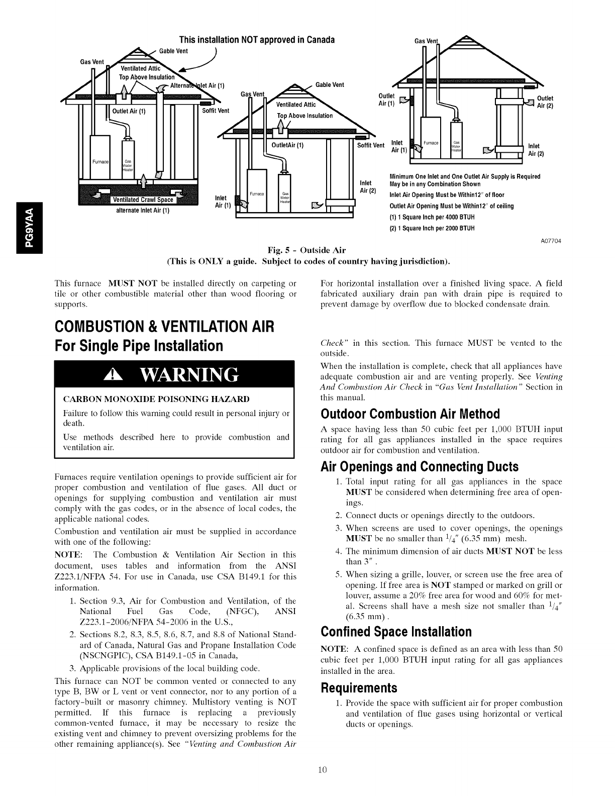 a. In the event that the side wall horizontally vented gas fueled equipment is installed in a crawl space or an attic, the hard