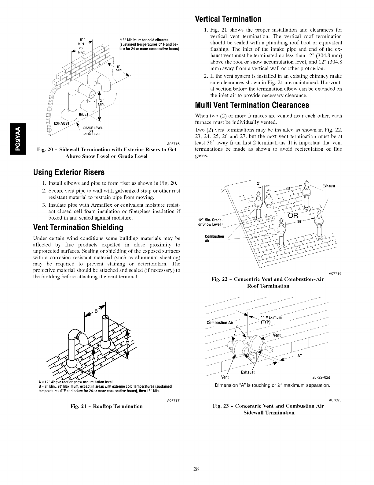 the side wall exhaust vent termination is less than seven (7) feet above finished grade in the area of the venting,