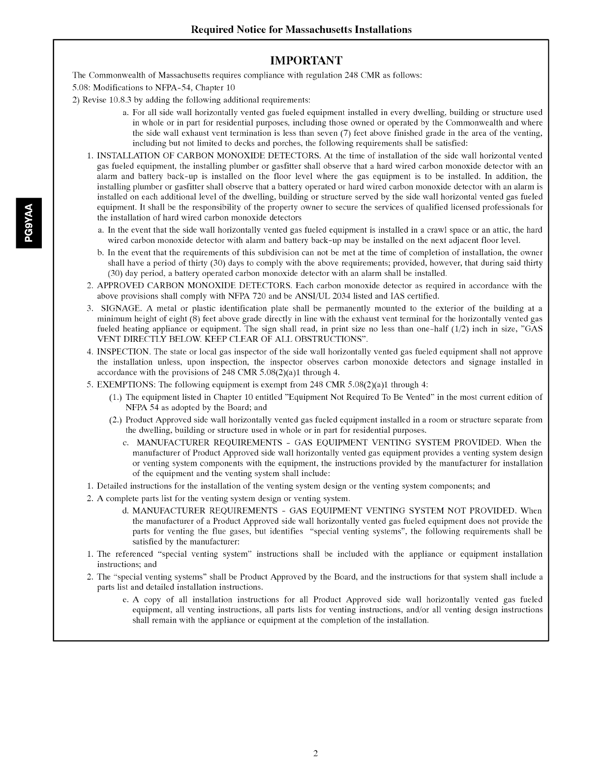 The Commonwealth of Massachusetts requires compliance with regulation 248 CMR as follows: