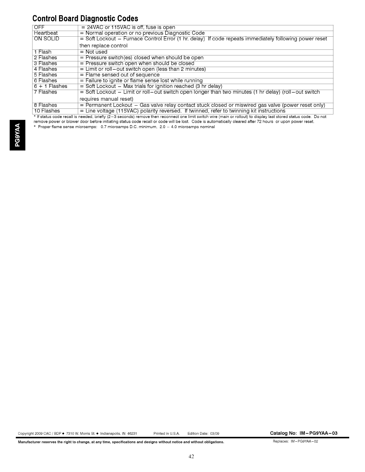 * Proper flame sense microamps: 0.7 microamps D.C. minimum, 2.0 - 4.0 microamps nominal