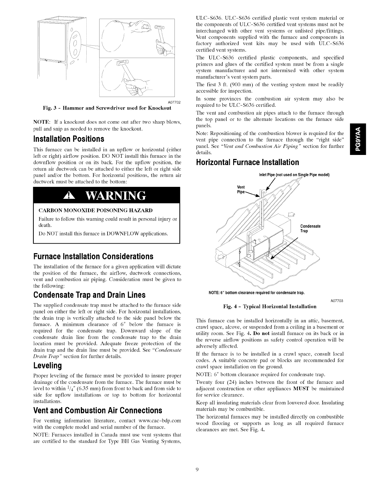 1. INSTALLATION OF CARBON MONOXIDE DETECTORS. At the time of installation of the side wall horizontal vented