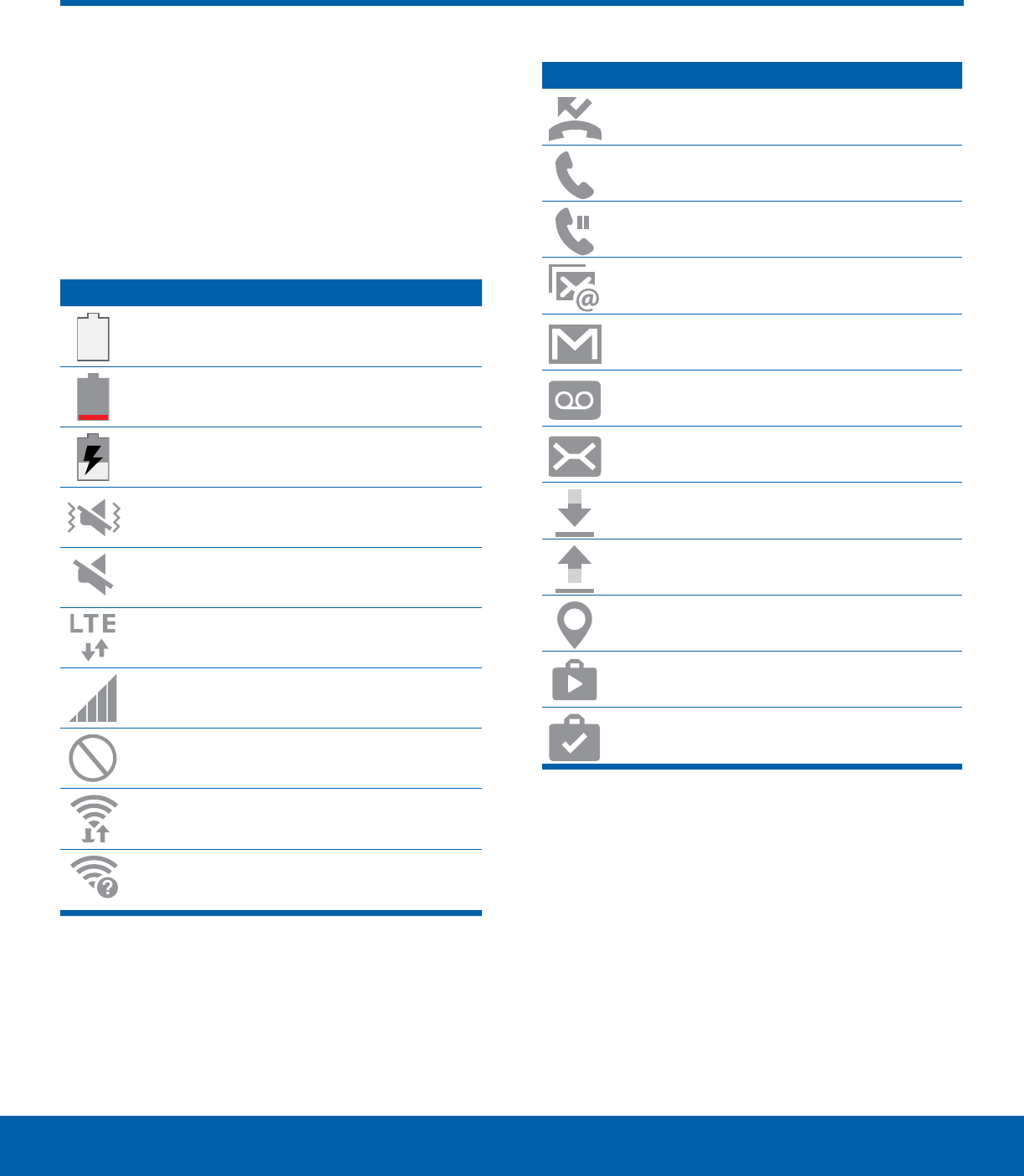•  Status: View the status of the battery, network,