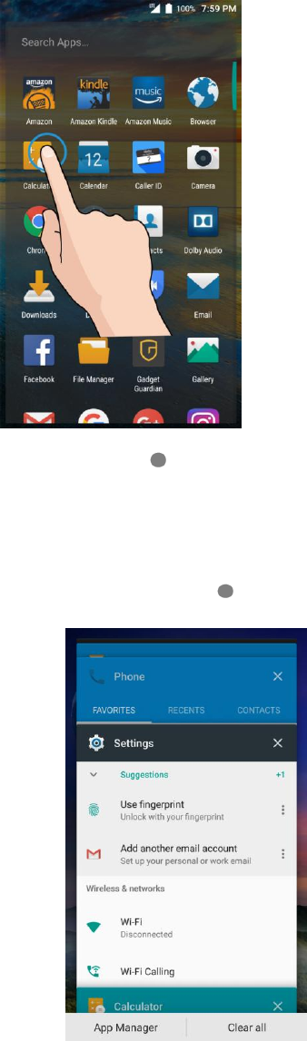 Displays a list of recently used applications or access the Split Screen