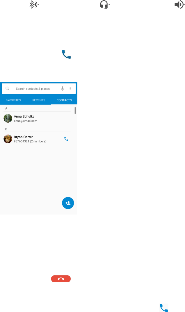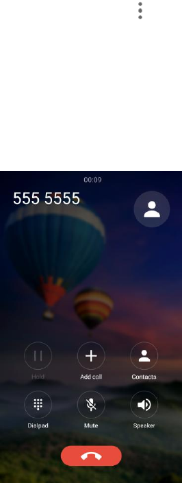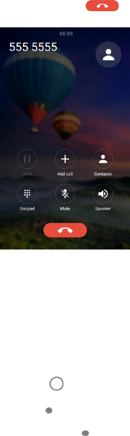 call status, the Contacts list, and the date and time. Also provides one-