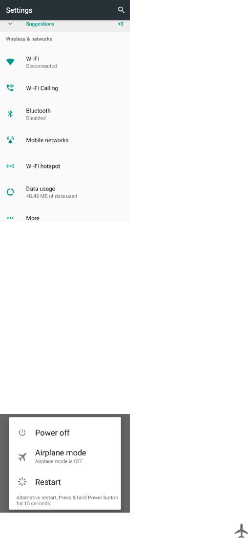Lets you turn the phone on or off, turn airplane mode on or off, turn the
