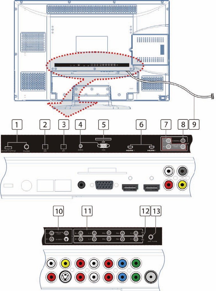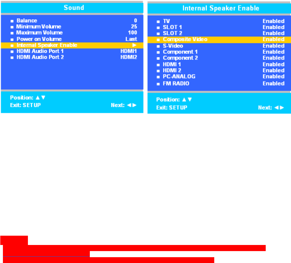 The speakers inside the TV’s cabinet normally are enabled. Sound is also routed externally to an attached pillow speaker.