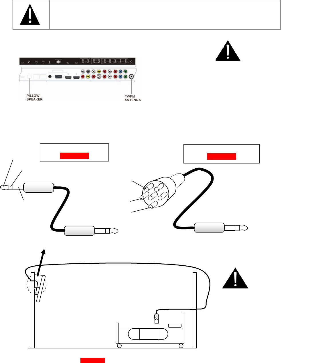 For pillow speakers with an adjustment thumbwheel volume control, ALWAYS