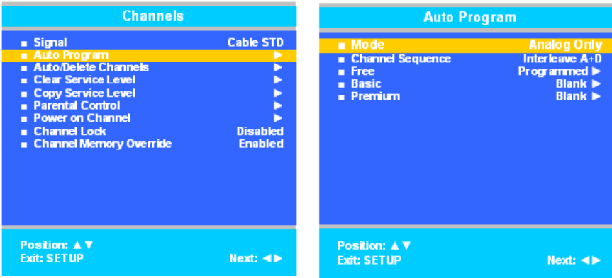 6. Now perform Auto Program or Add/Delete Channels to adjust the channels.