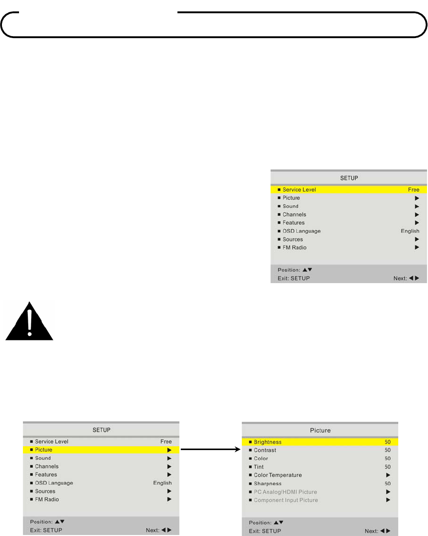 NOTE: Opening the TV set, or attempting a repair by