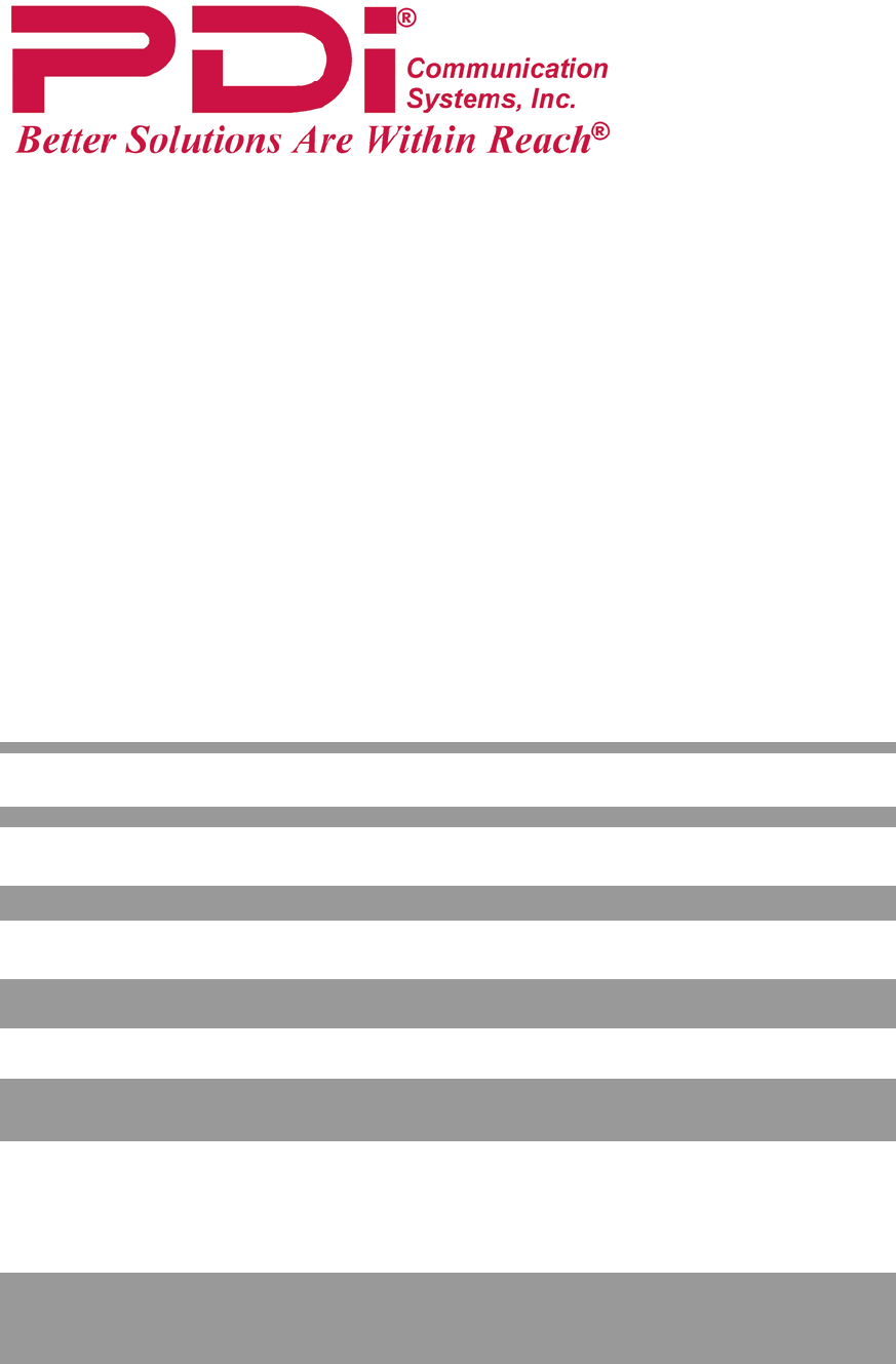 please contact PDI COMMUNICATION SYSTEMS at 40 Greenwood Lane, Springboro, Ohio 45066