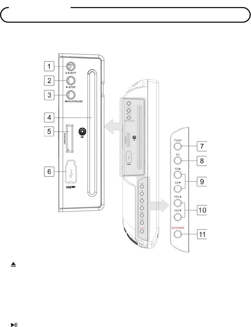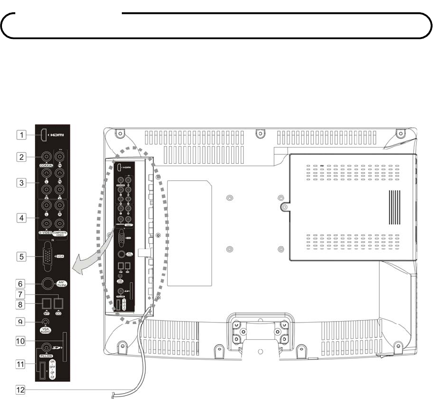 External IN/OUT ports RF IN, COMPONENT, HDMI, PILLOW SPEAKER,