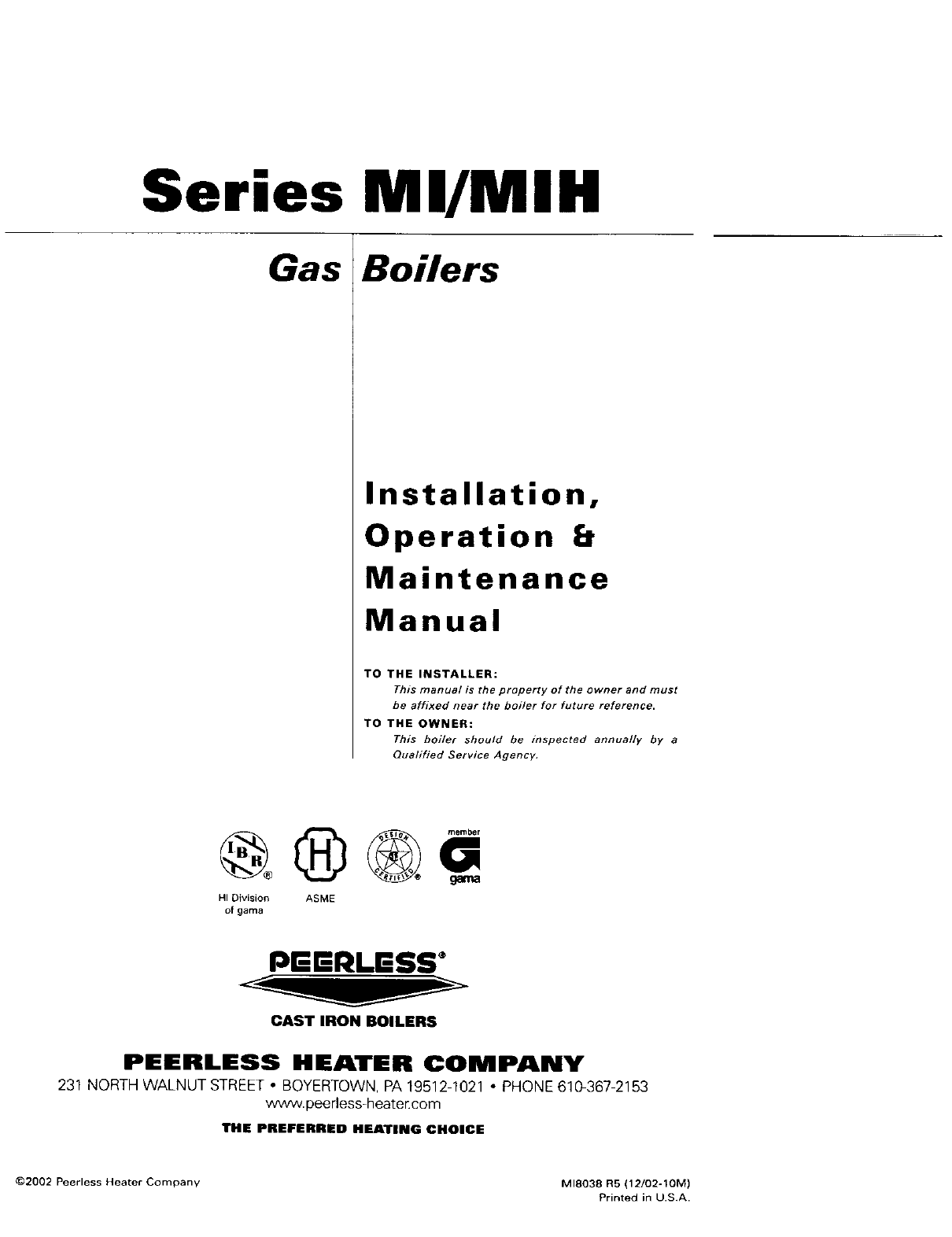 @2002 Peerless Heater Company MI8038 R5 (12/02-10M)