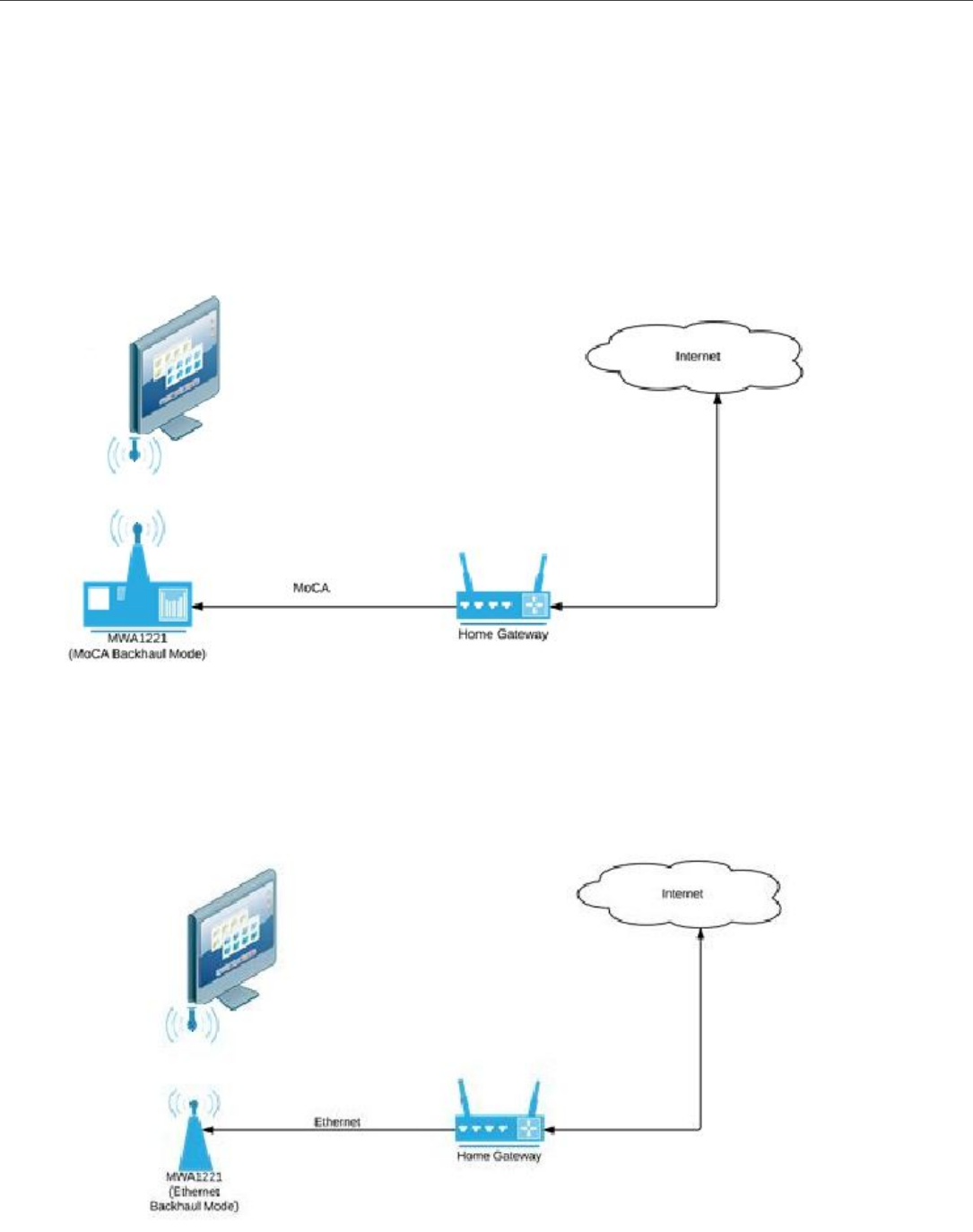 The MWA1221 (MoCA to Wireless Adapter) product can be used in multiple deployment configurations. This