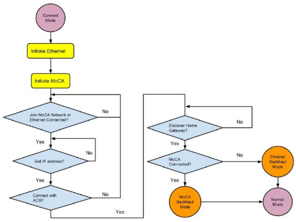 When connected with gateway from MoCA interface or Ethernet interface, MWA1221 will enter Normal Mode.