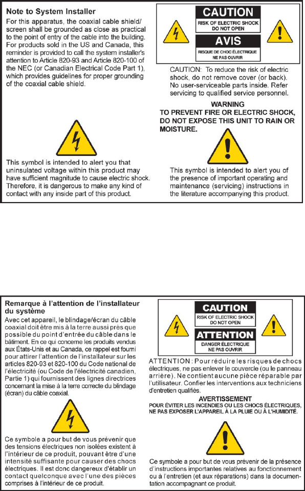 exclusivement au personnel technique qualifié. Pour réduire les risques de chocs électriques, n’effectuer