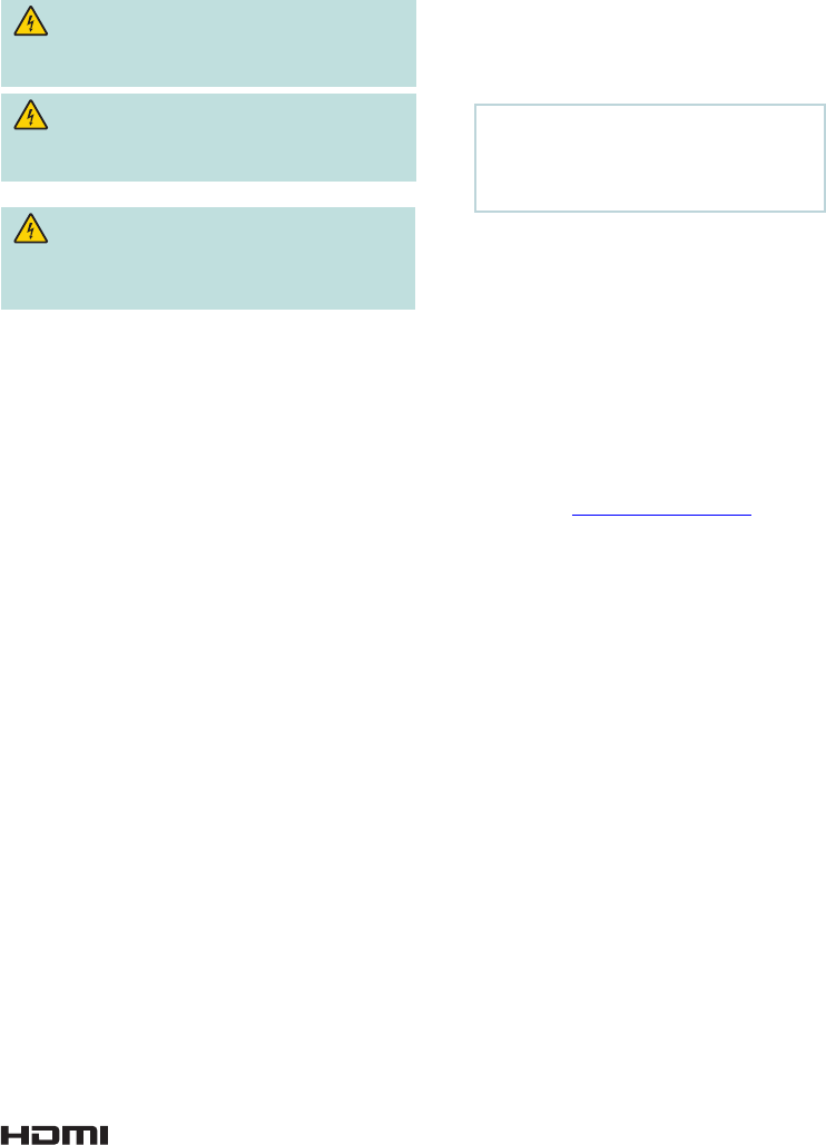 The terms HDMI and HDMI High-Denition Multimedia Interface, and the HDMI Logo are trademarks or registered trademarks of HDMI Licensing LLC in the