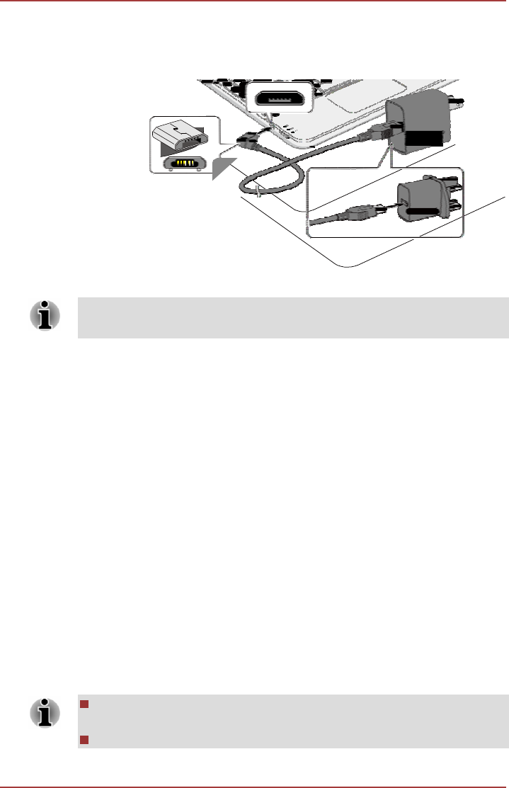 4. Connect the AC adaptor to the Micro-USB port of the tablet, and to a