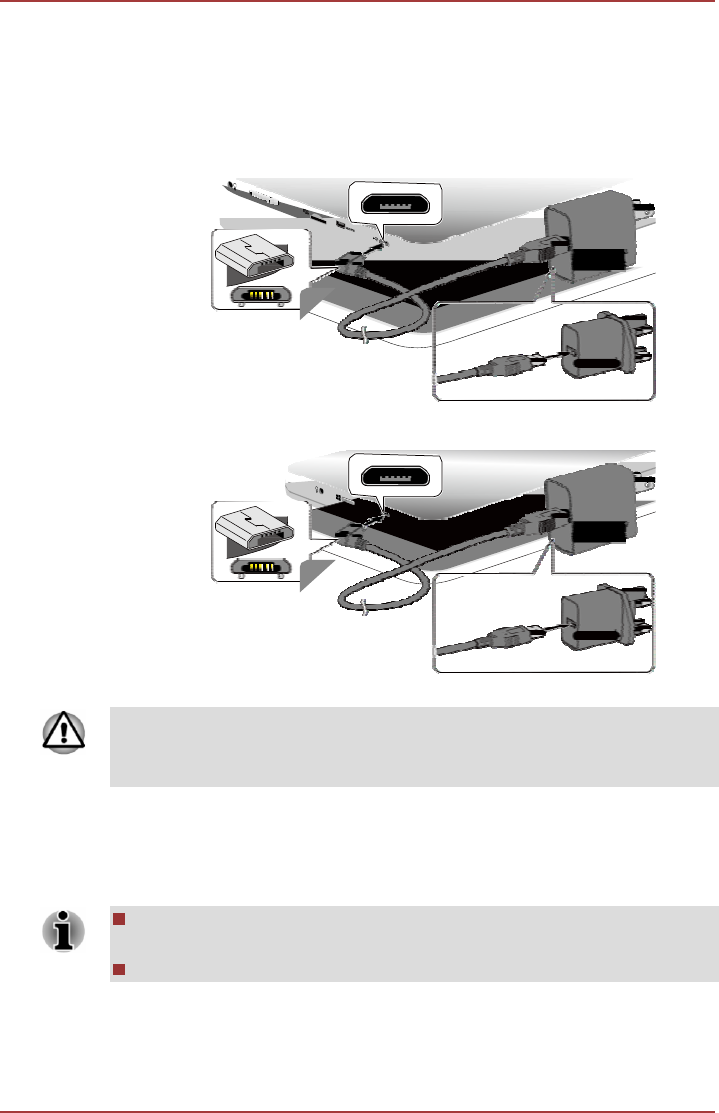 2. Connect the AC adaptor to the Micro-USB port of the tablet, and to a