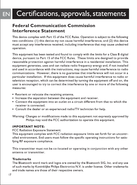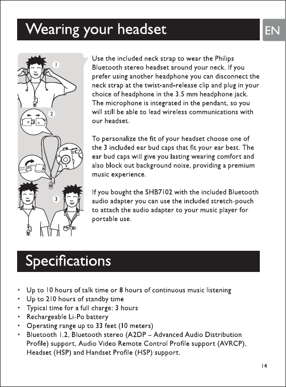 PHILIPS Consumer Electronics HB7100 Bluetooth Stereo Pendant User Manual MCB 8101010 6A