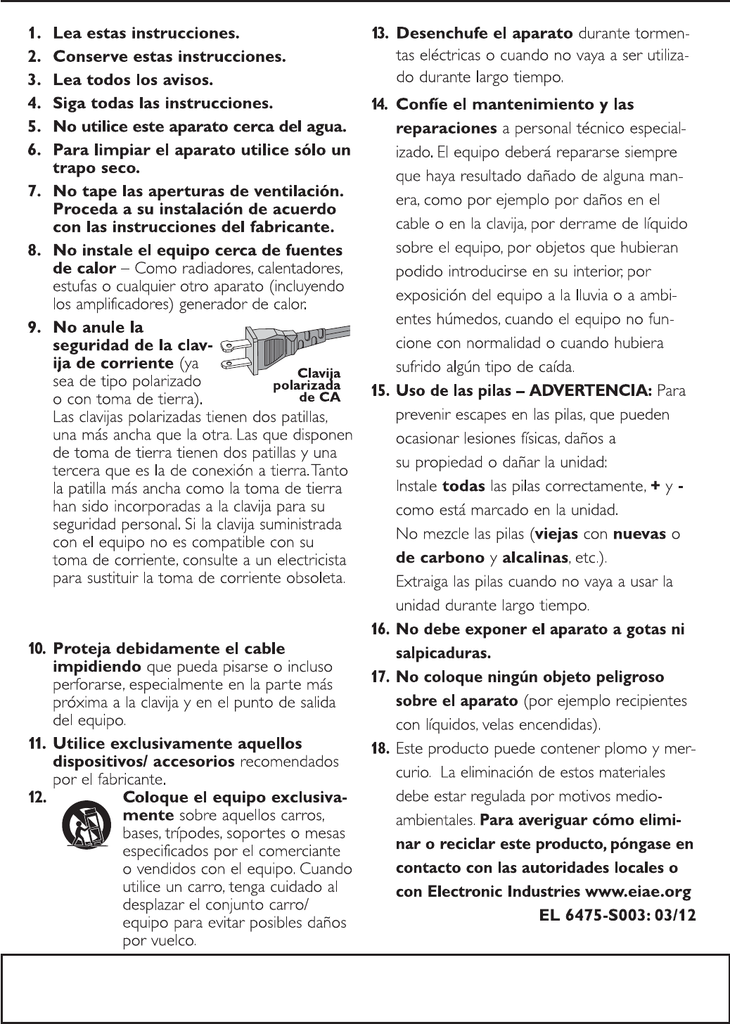 ADECUADO. DESECHE LAS PILAS DE ACUERDO CON