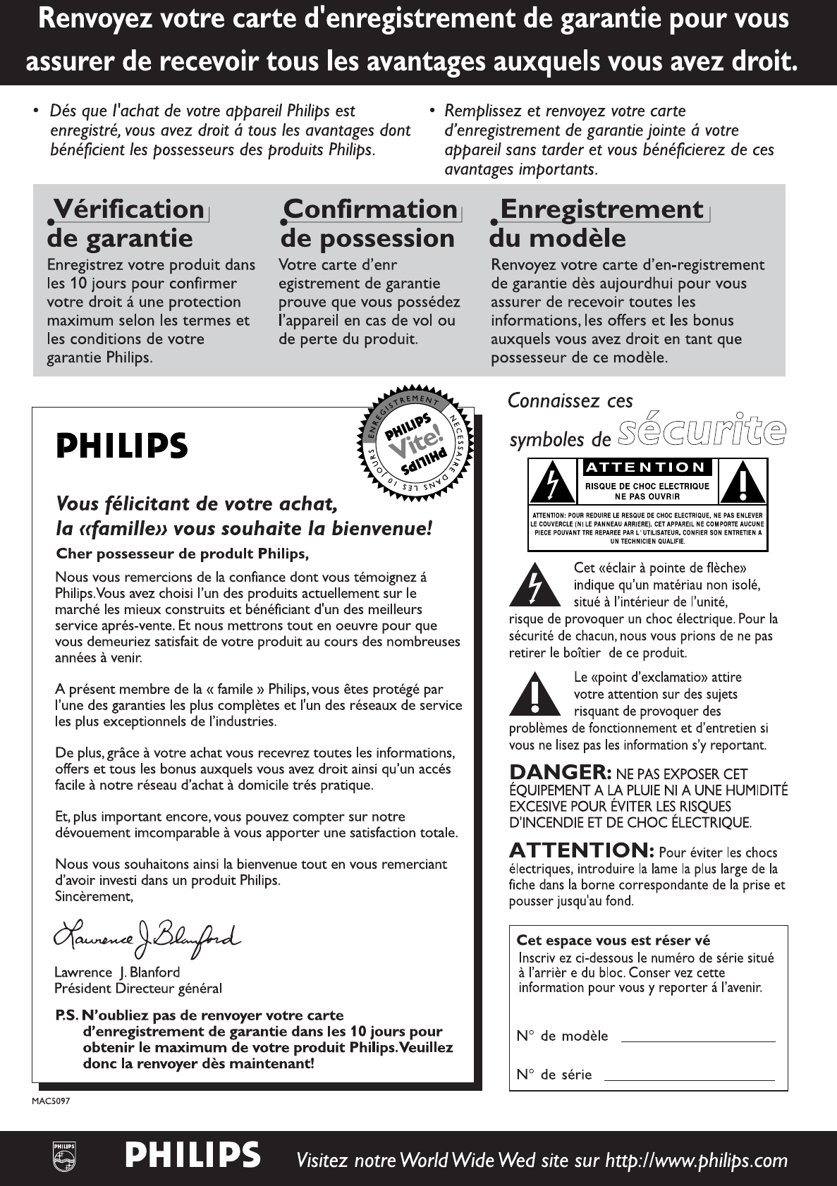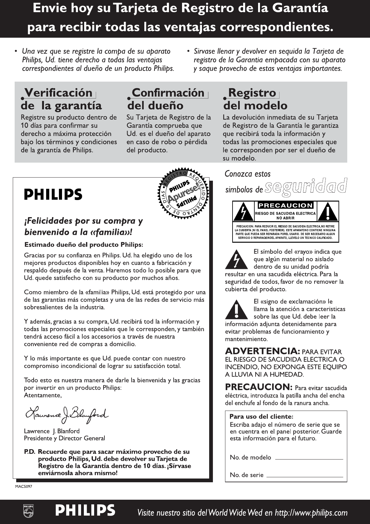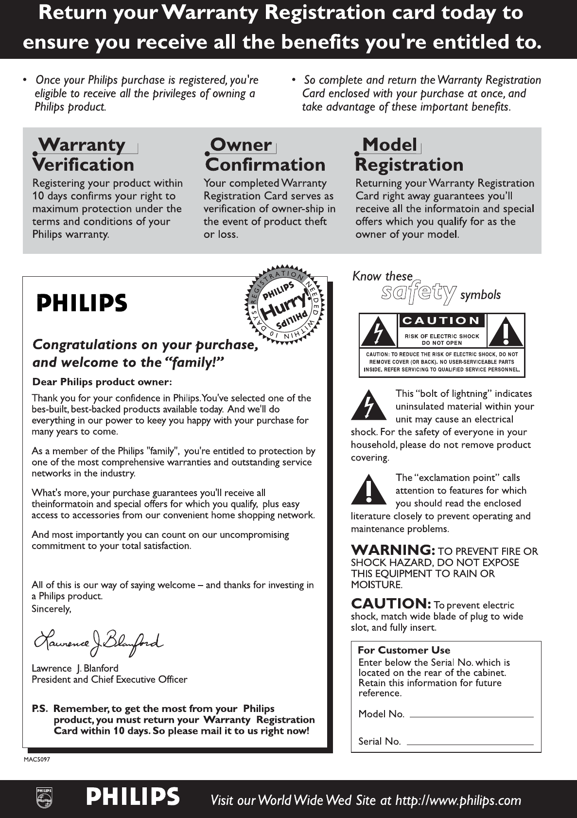 PHILIPS CONSUMER ELECTRONICS warrants this