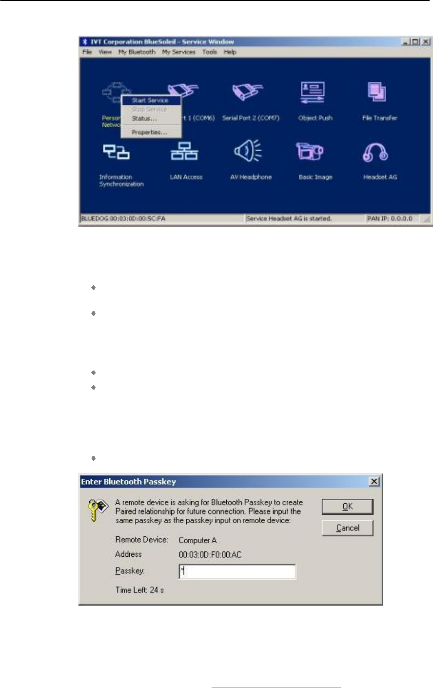 Start Bluetooth Service Start the selected Bluetooth service. Only after the