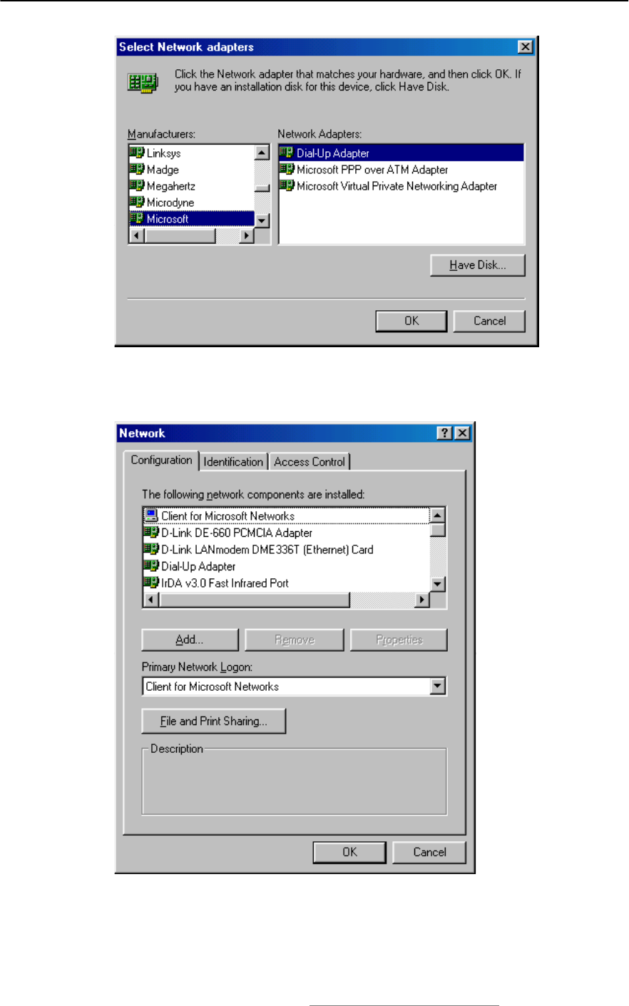 8.4Settings for LAN Access Profile (client side) in Windows98/Me........................61