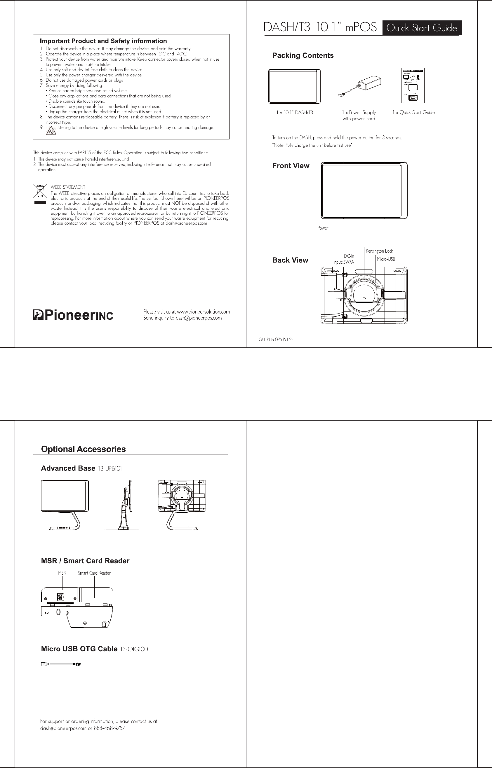 PIONEER POS SOLUTION DASH-T3 10.1 mPOS User Manual T3 DASH10 mPOS QSG 10 GUIPUB076 V1 2 R1