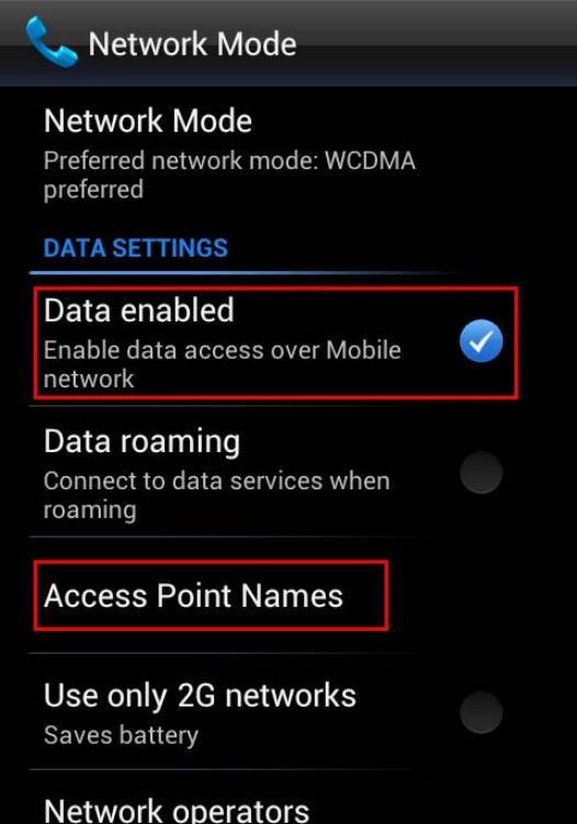 Access Point Names, Use only 2G networks and Network operators.