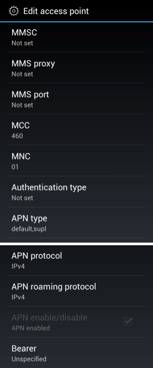 fields may disable cellular data connectivity. To verify correct APN information, contact the
