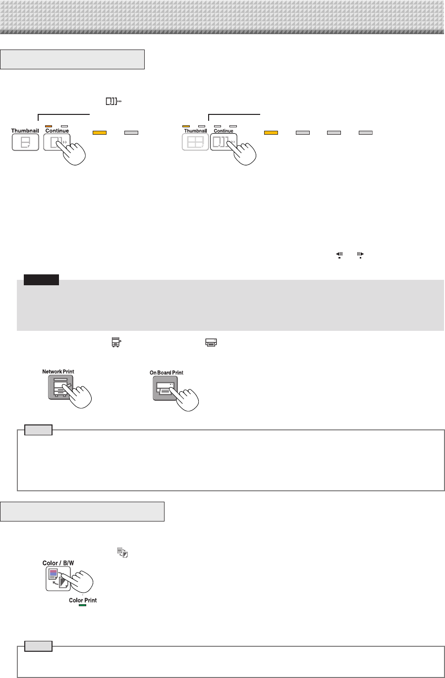 • If“ColorPrint”inCBSetupissetto“Invalid”,apressoftheColor/B/Wbuttonwillselectforciblymonochromecolor.