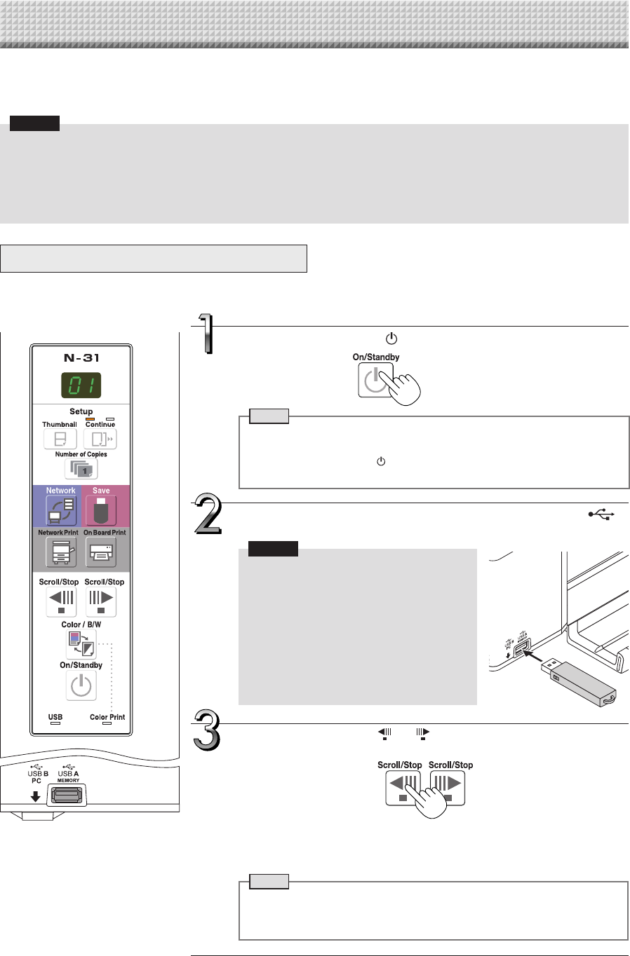 • If the ON/Standby button is pressed during scanning, scanning is interrupted and only the images that have been