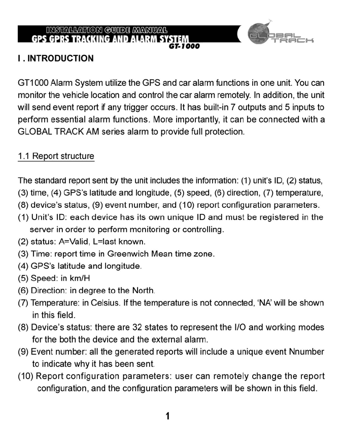 PORTMAN ELECTRONICS GT-1000 GPS TRACKING AND ALARM SYSTEM User Manual