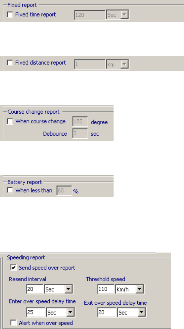 The automatic reporting mode can be categorized as ‘time’ report, ‘distance’ report, or ‘time & velocity’