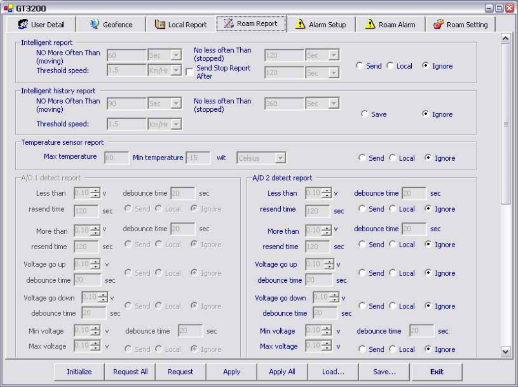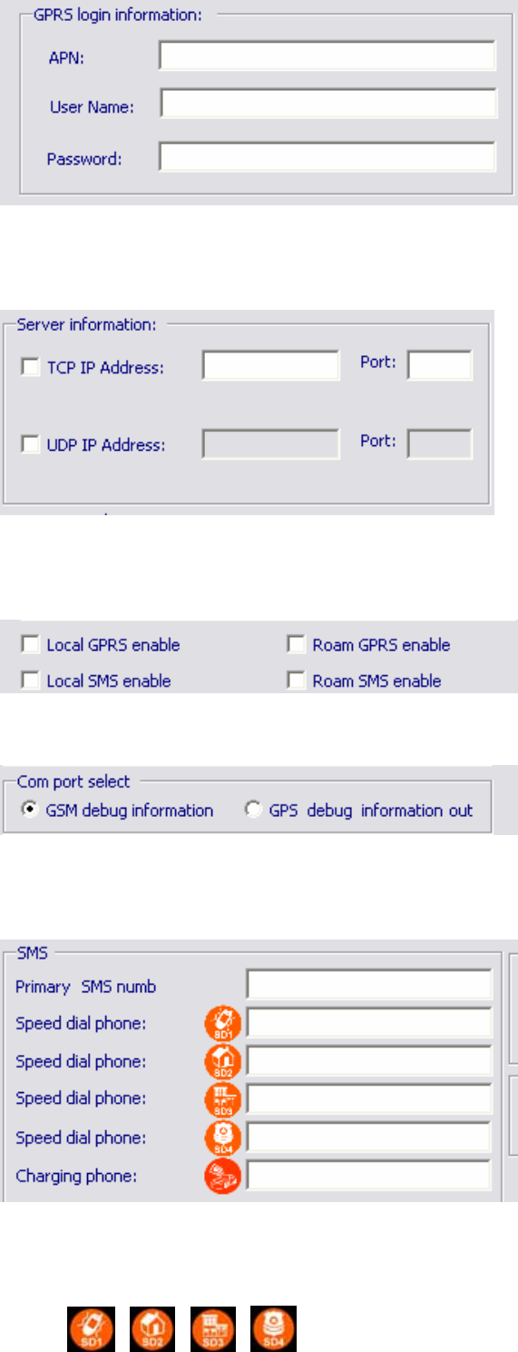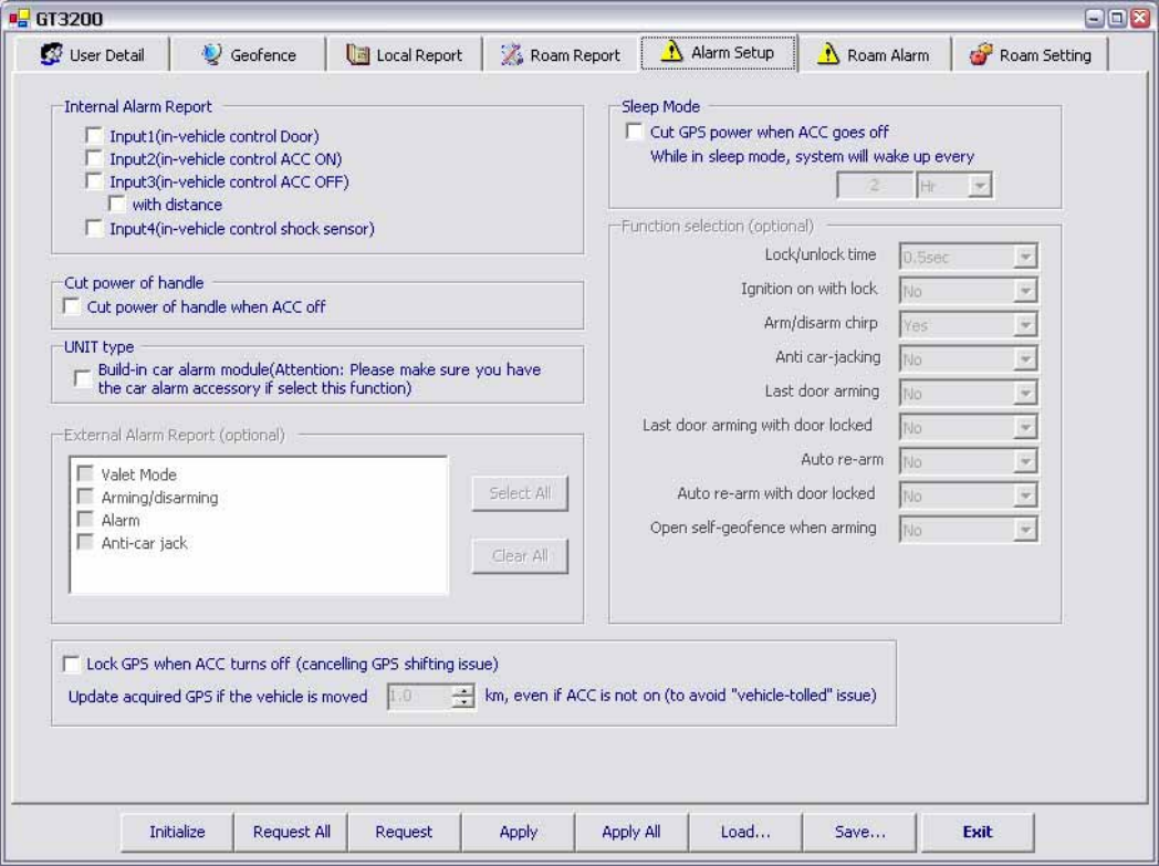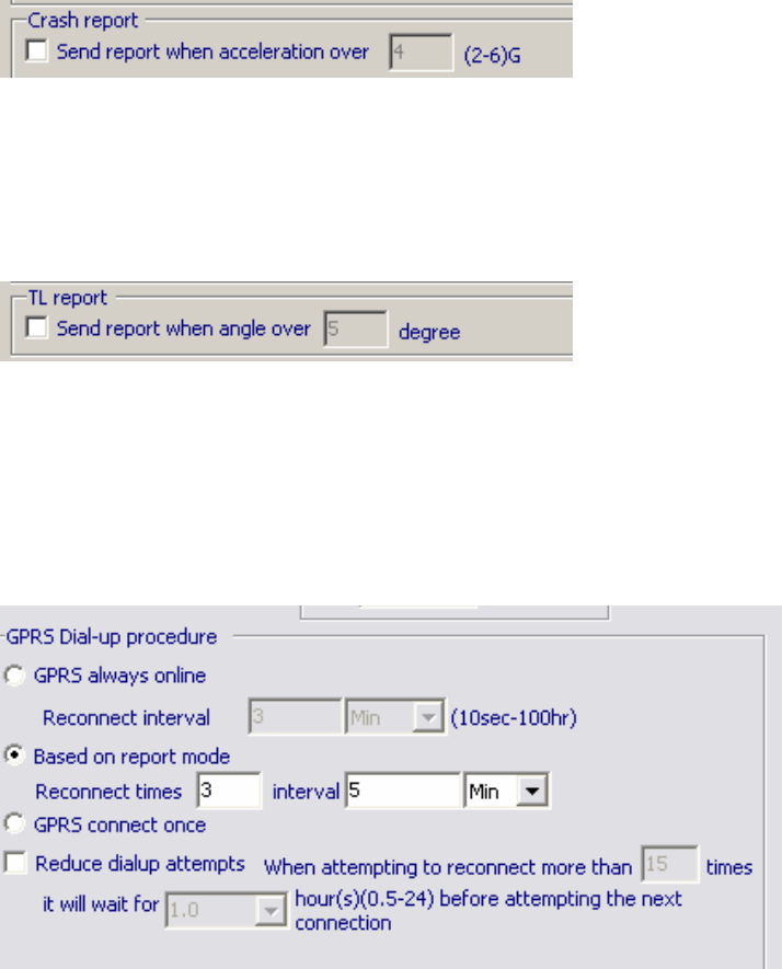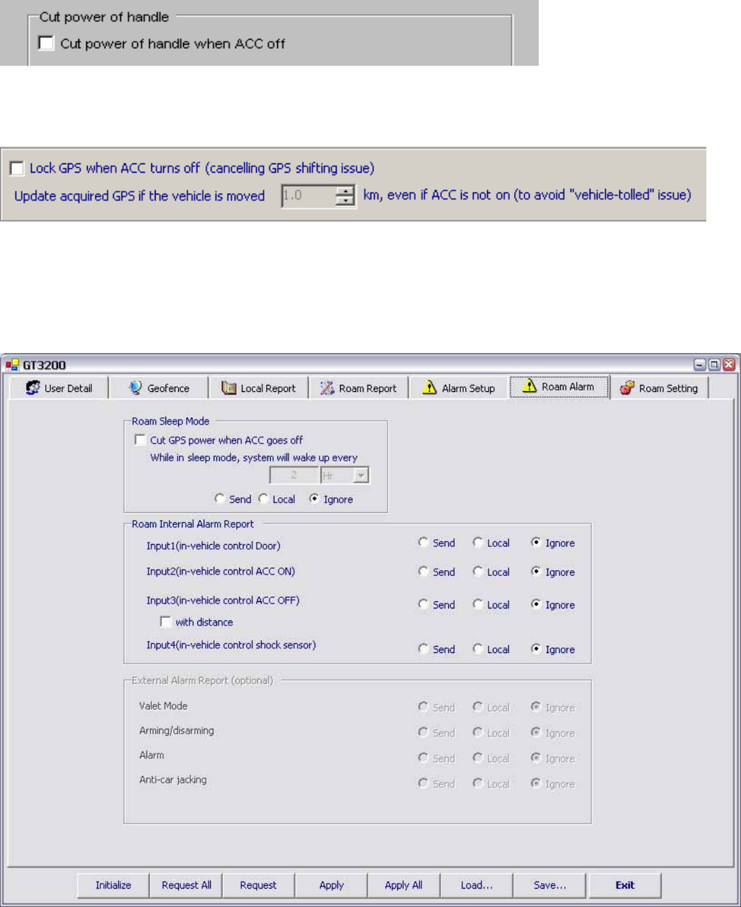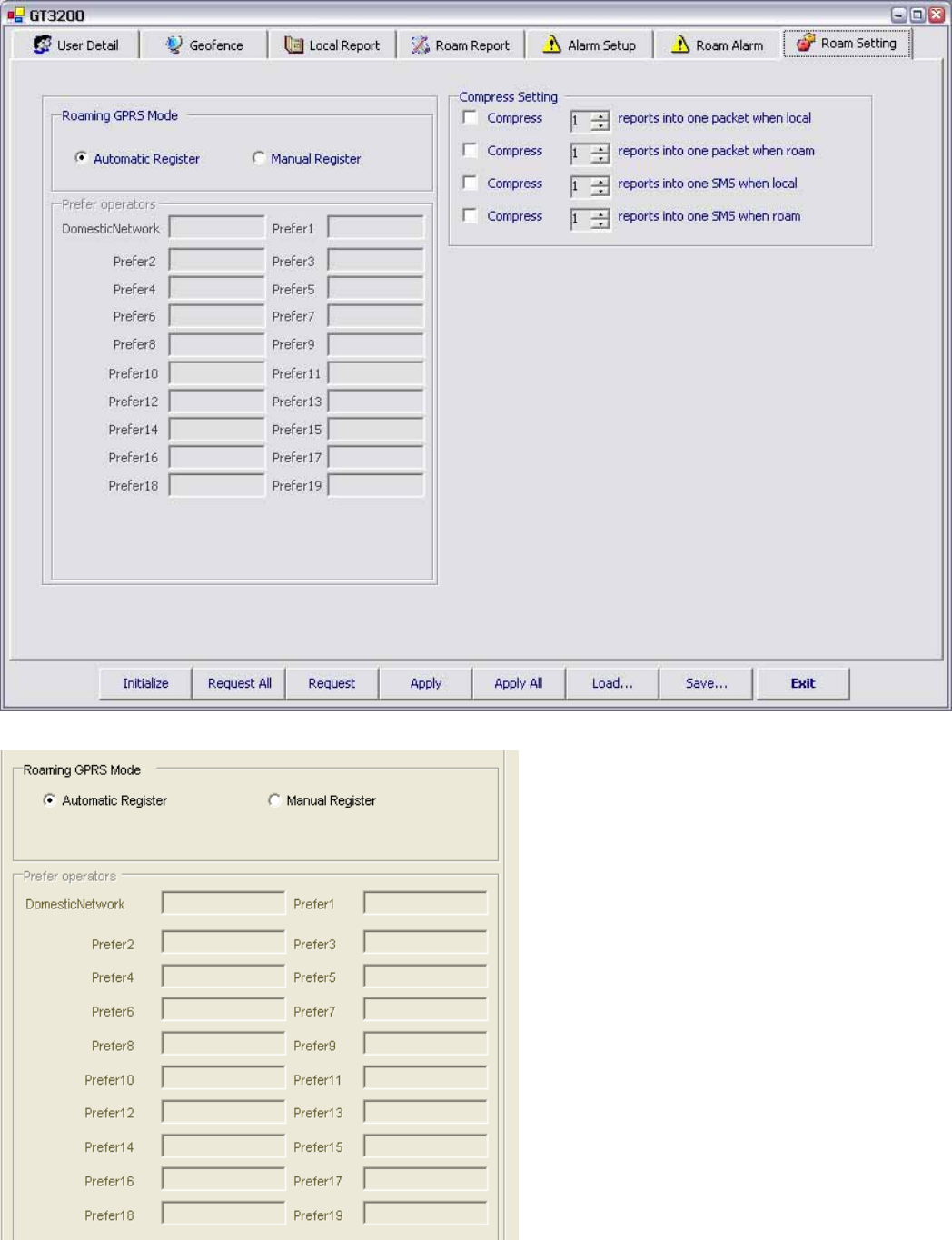(Sleep mode, internal alarm report, external alarm report..) (7) Roam setting (Roaming GPRS mode select,