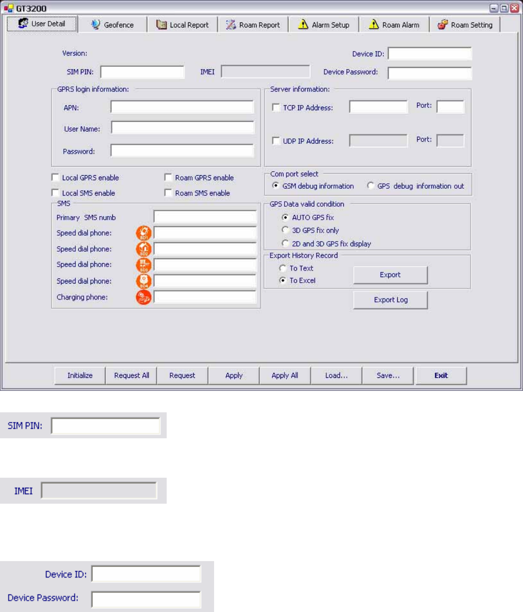 Note that the device ID, GPRS APN name, GPRS login name and password need to be set in initial PC setup