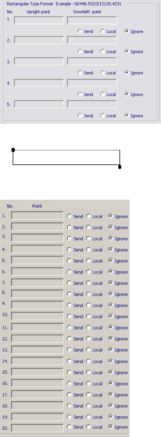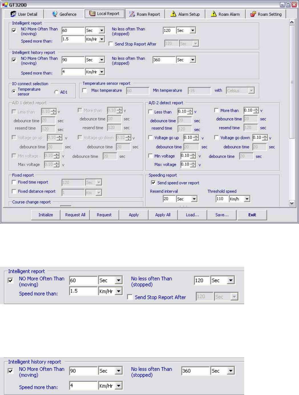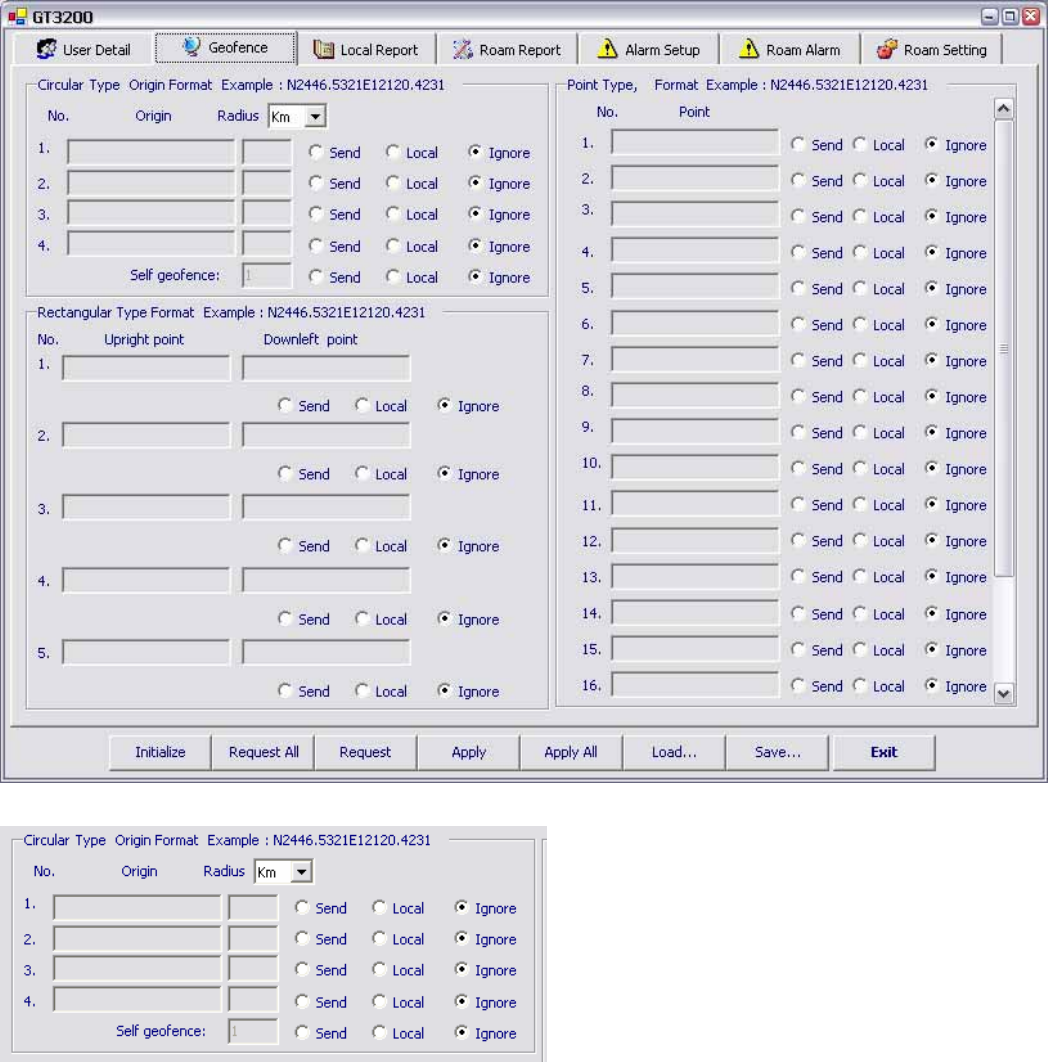 rectangular and 20 point Geofence shapes can be set in the device) (3) Local Report setting (Time, Distance,