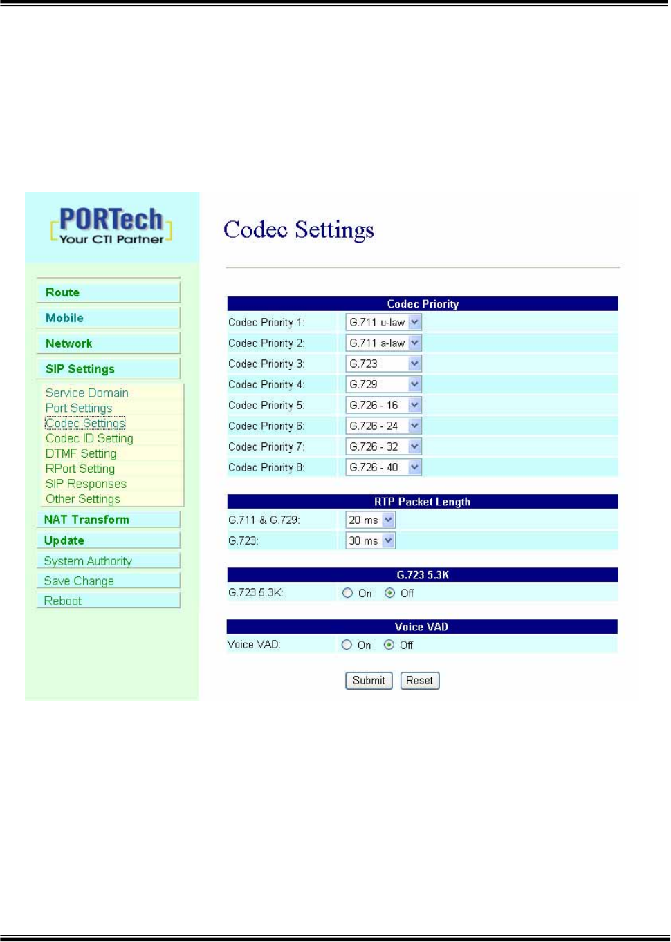 username=voip, password=1234). The page follows when the