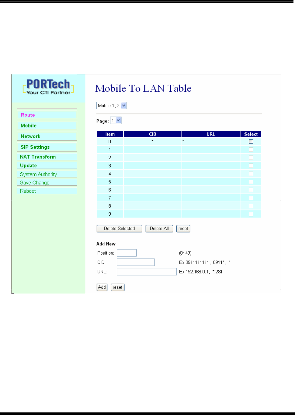 2.2 50 sets of LAN->MOBILE routes setting,50 sets of MOBILE->LAN