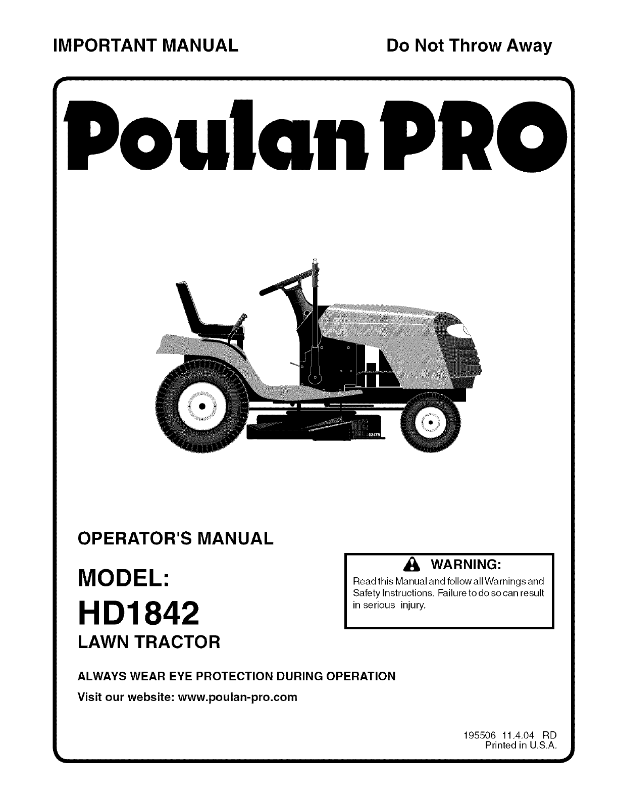 User Manual: POULAN POULAN Lawn, Tractor Manual POULAN Lawn, Tractor Owner's Manual, POULAN Lawn, Tractor installation guides
