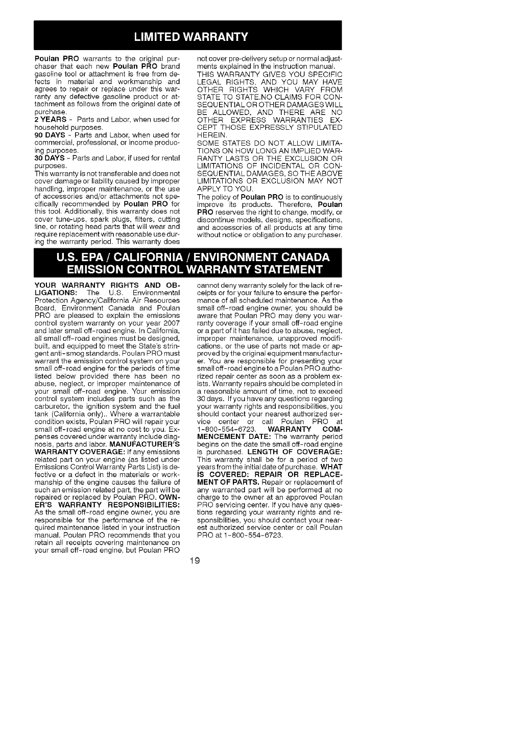 1-800-554-6723. PI_RIODE DE GARANTIE :