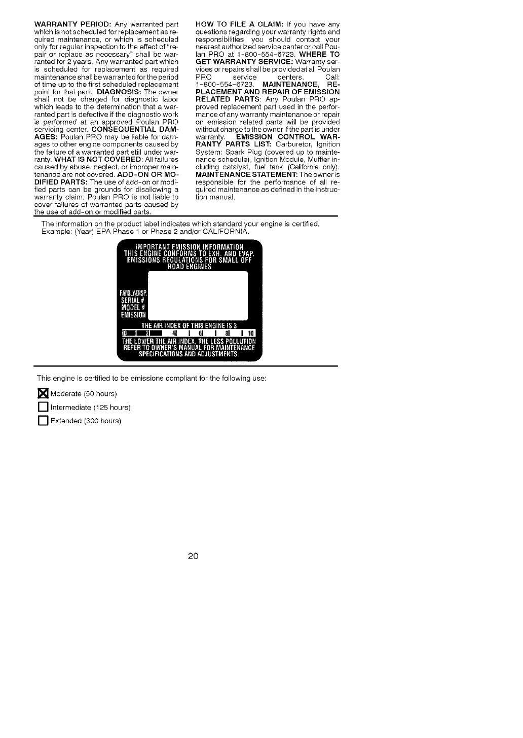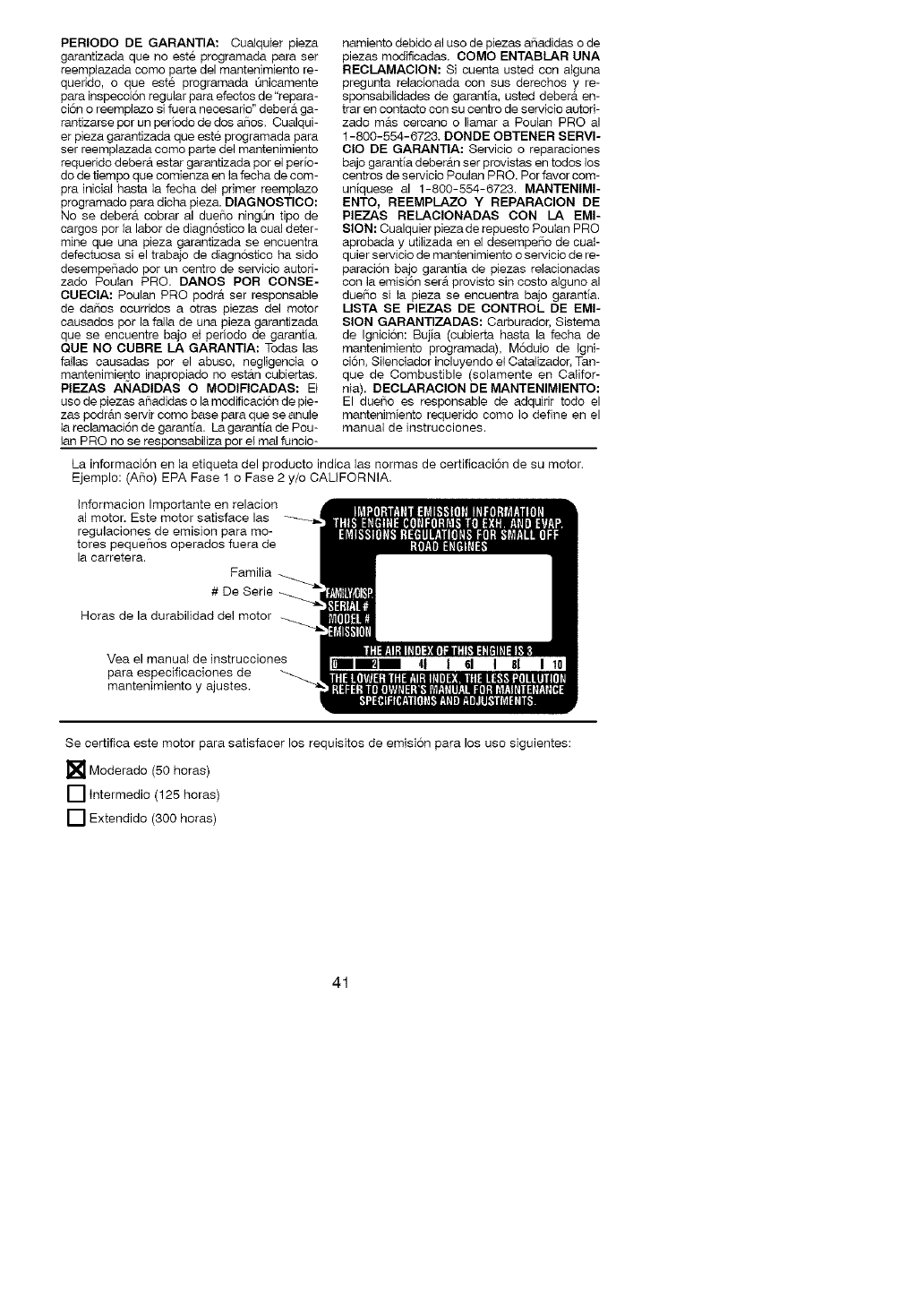 Uinformation sur I'etiquette du produit indique la norme de certification de votre moteur.
