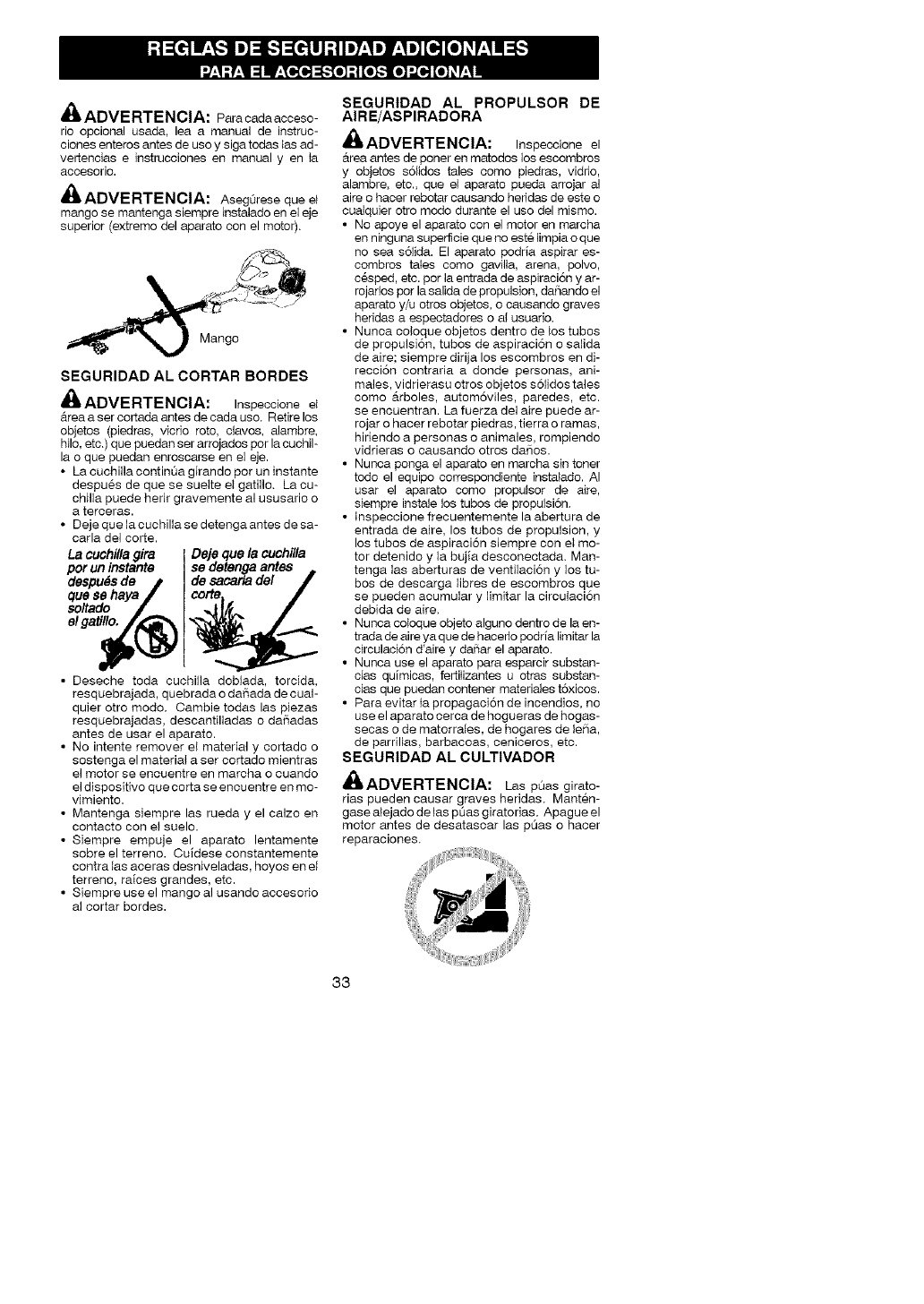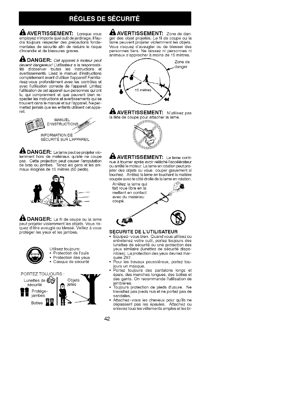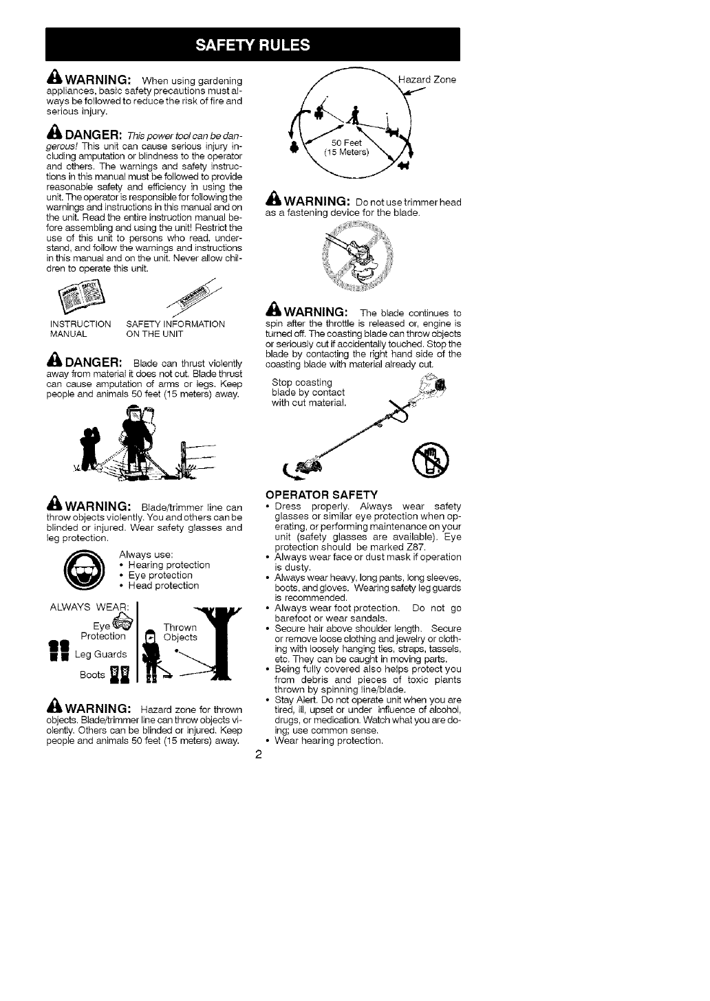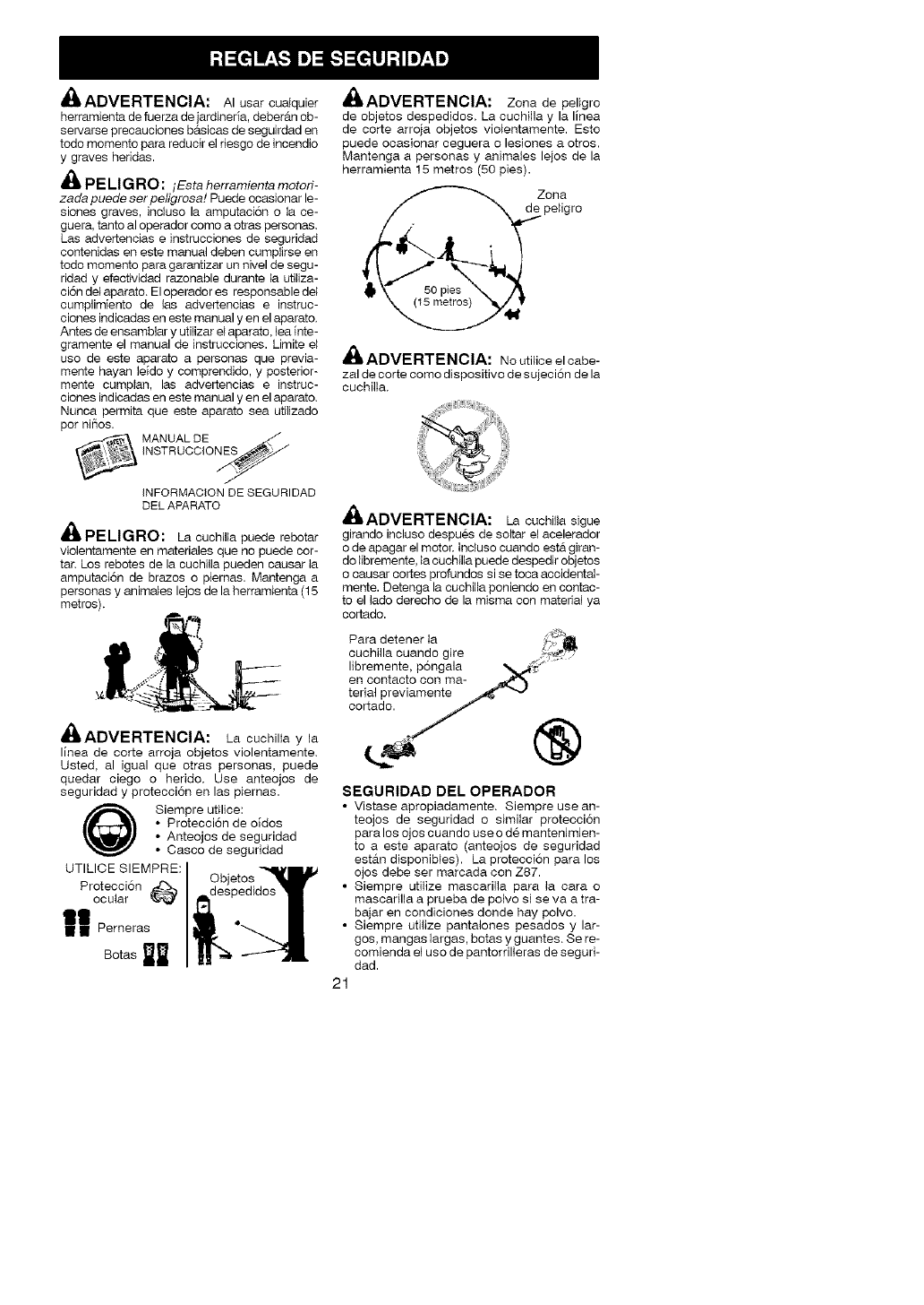 objects. Blade/trimmer line can throw objects vi-
