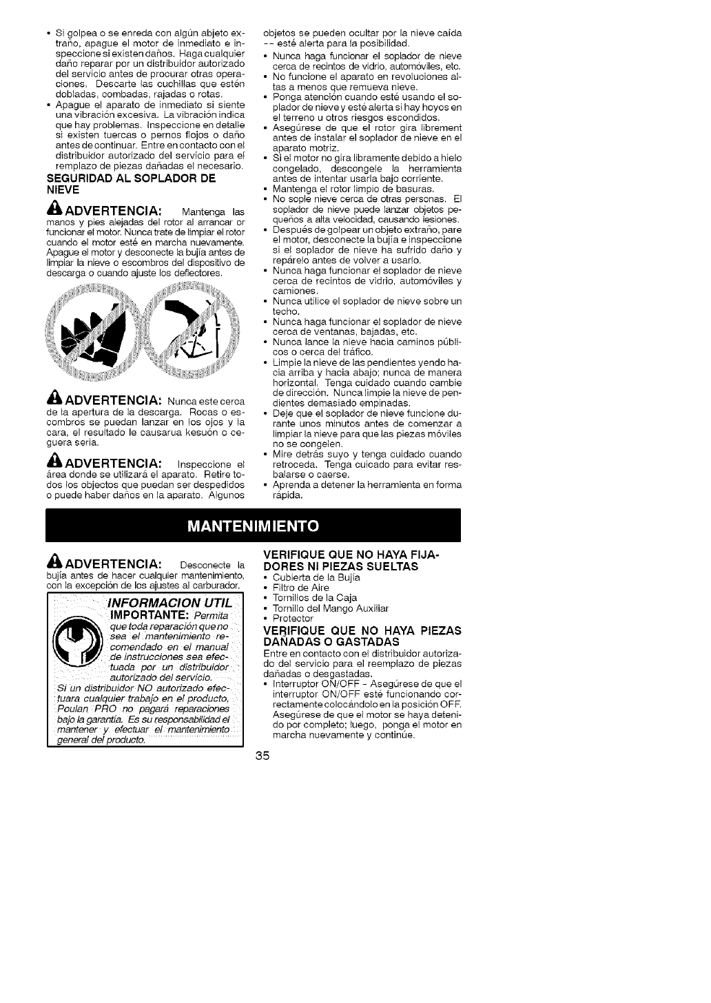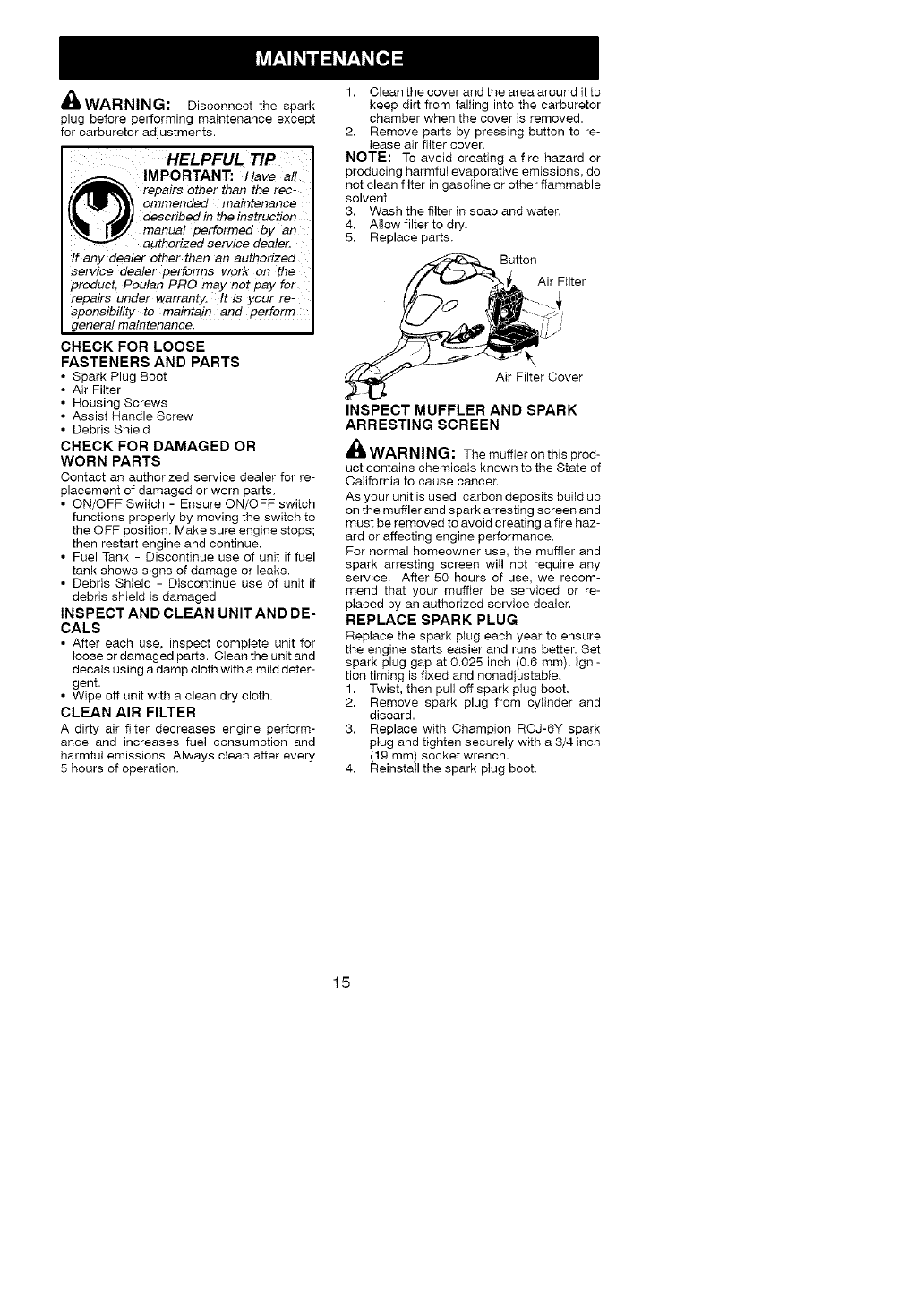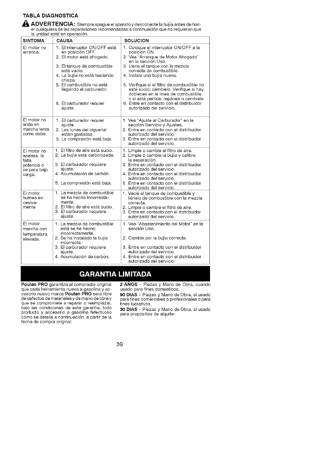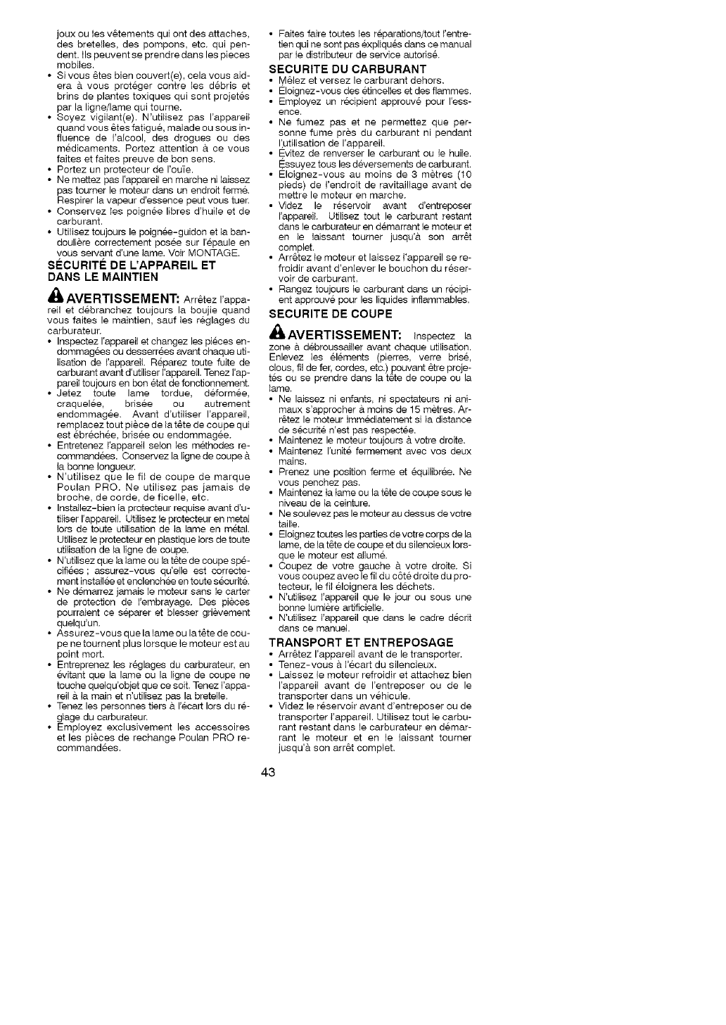 service Poulan PRO. DOMMAGES INDI-