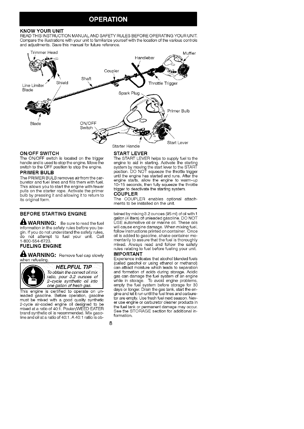 unit. The operator is responsible for following the