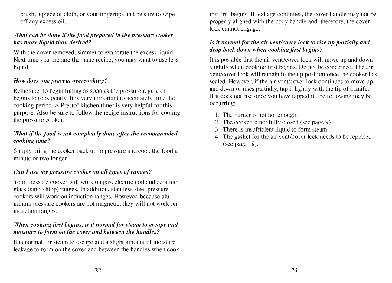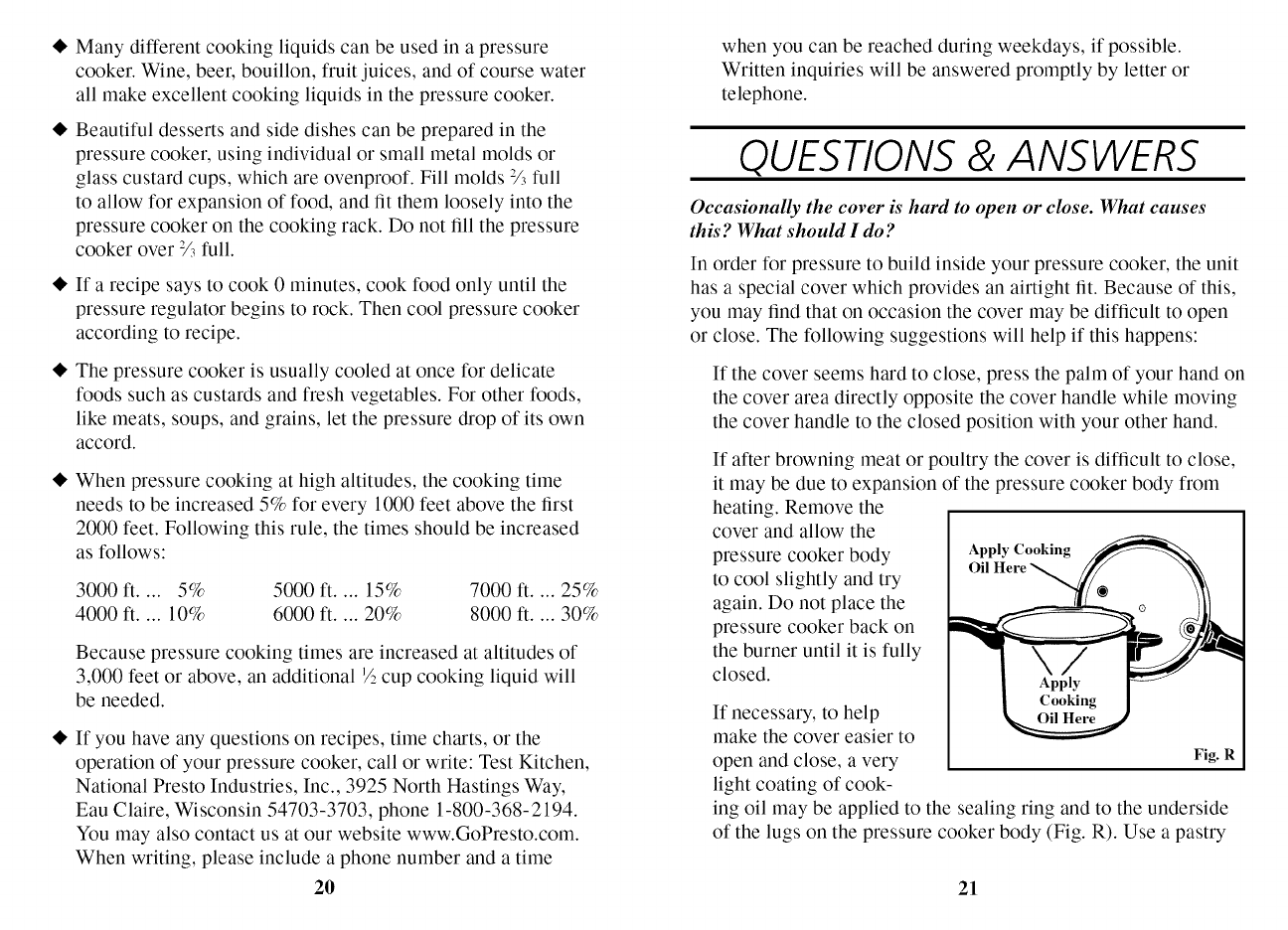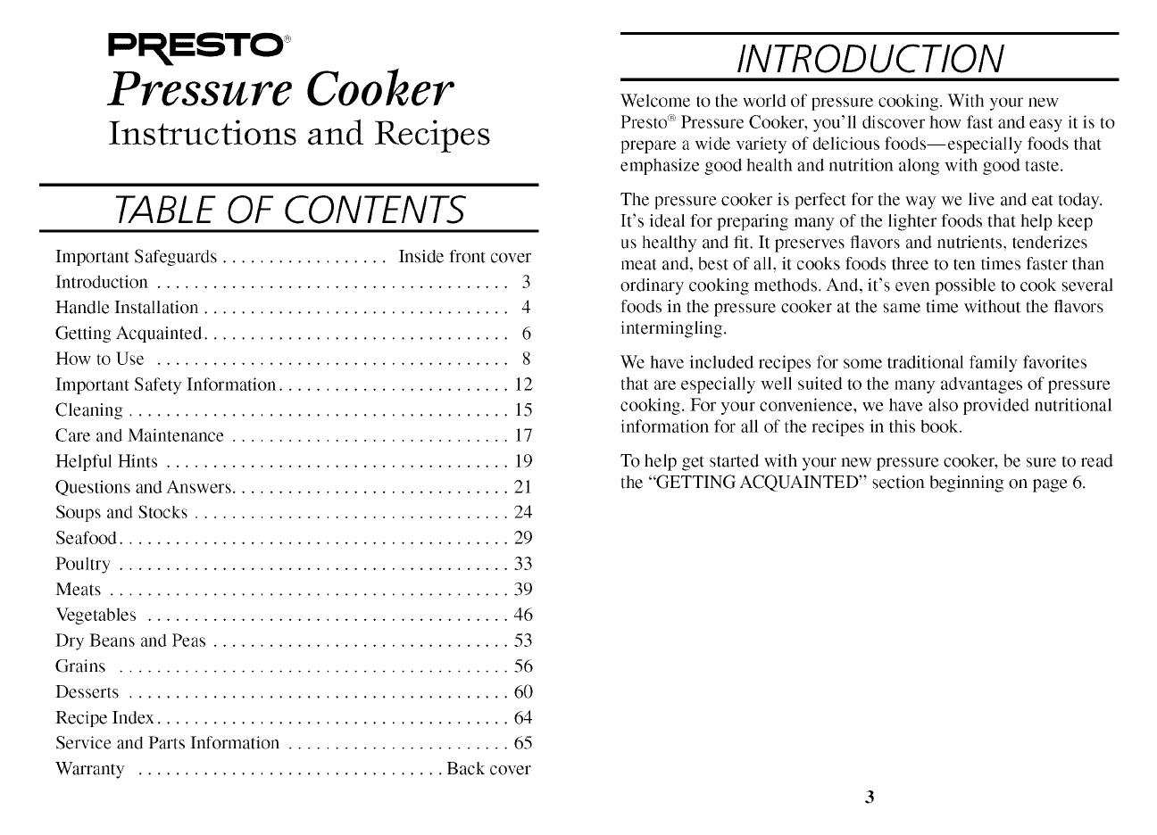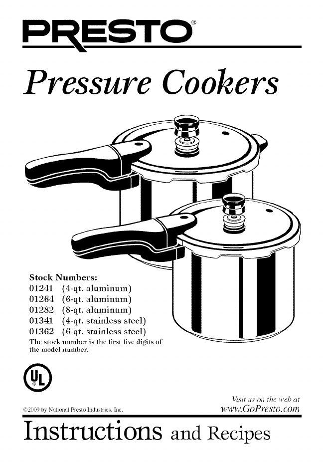 User Manual: PRESTO PRESTO Pressure cooker Manual PRESTO Pressure cooker Owner's Manual, PRESTO Pressure cooker installation guides